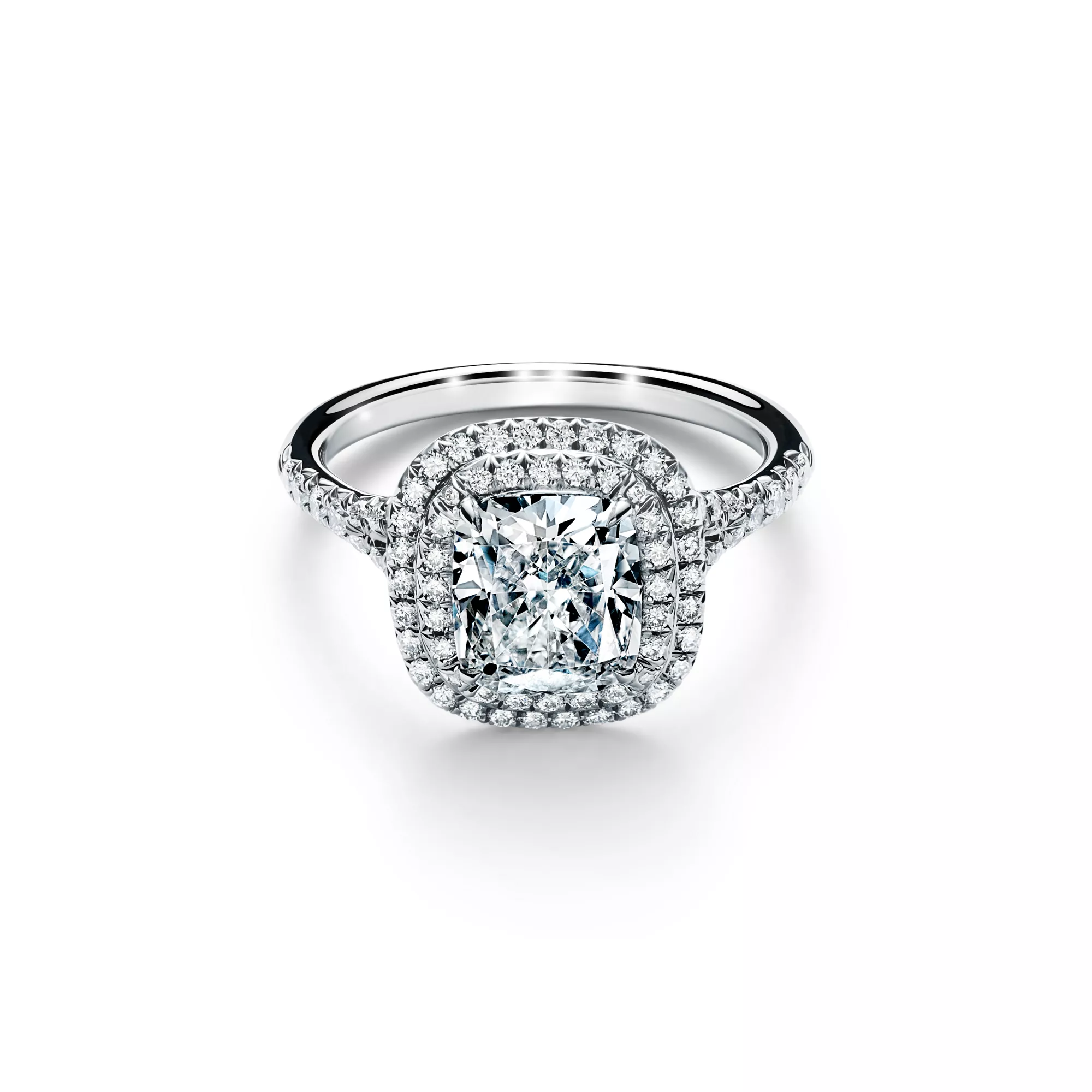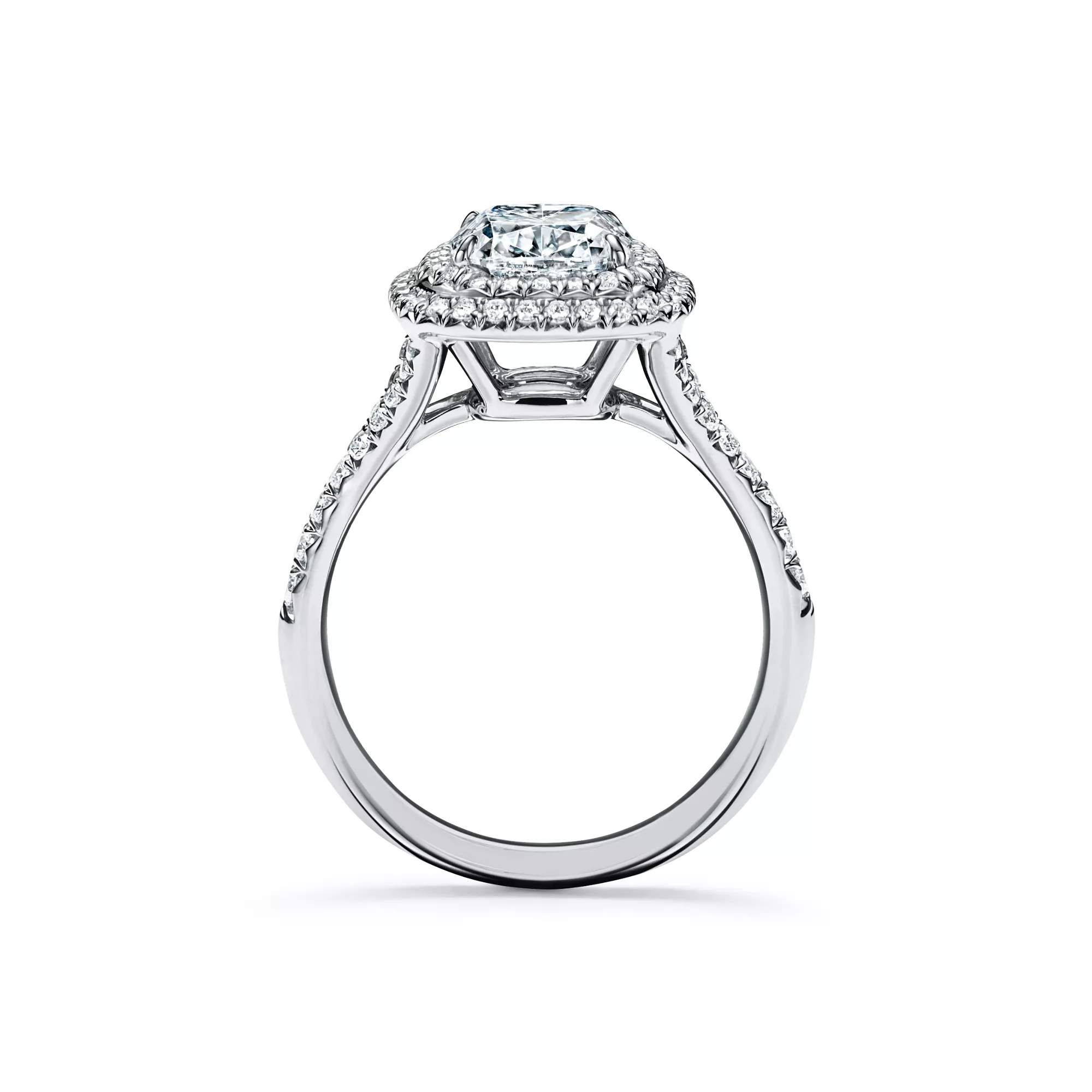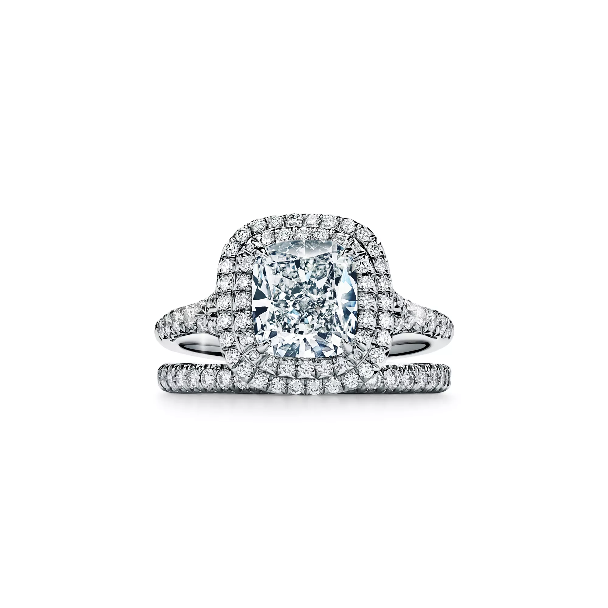 Just as the sun’s rays radiate outward, casting light in every direction, so too does the Tiffany Soleste® engagement ring. With a scintillating double halo of brilliant diamonds and a striking cushion-cut center stone, light is gathered and mirrored throughout the design, resulting in an unrivaled display of brilliance. At Tiffany, we ethically source our diamonds. Integrity and social responsibility are at the core of our sourcing practices.
