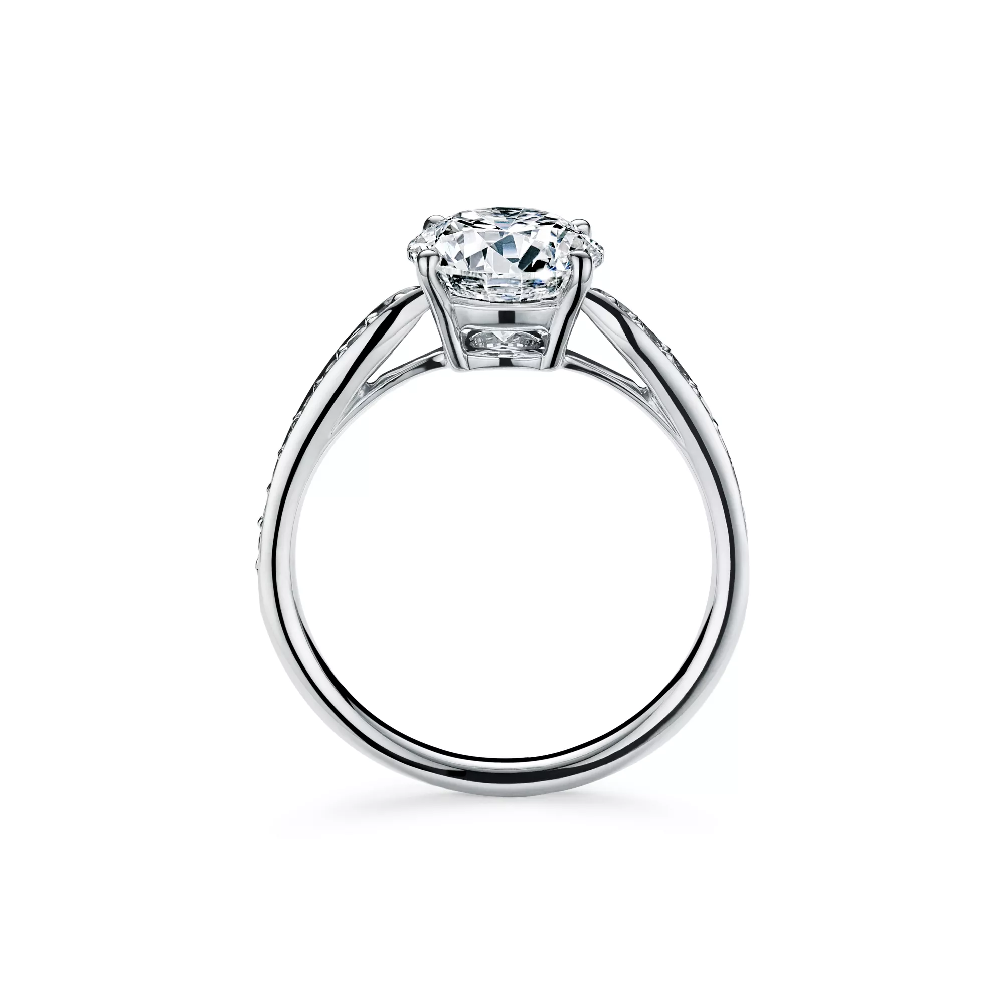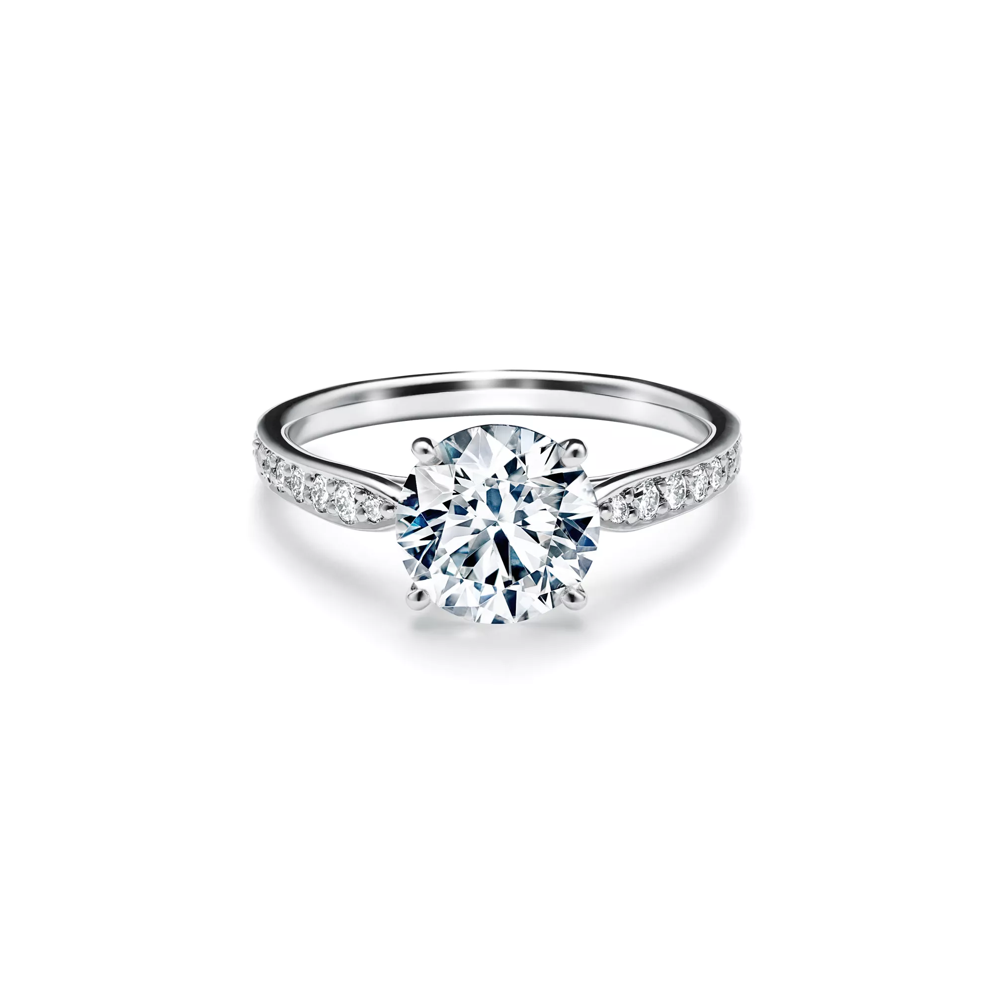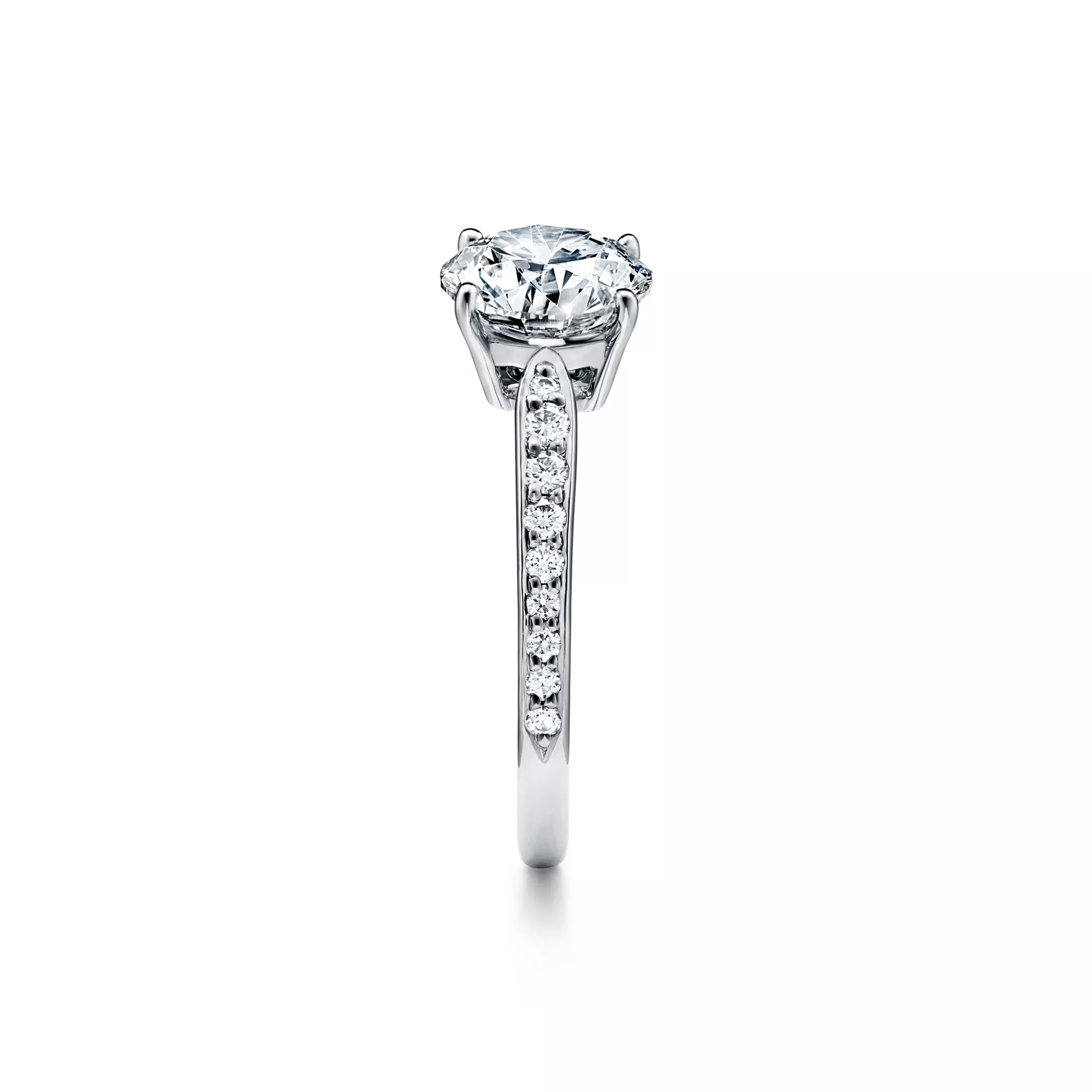 In the same way that lyrics and music effortlessly blend together, the Tiffany Harmony® engagement ring pairs perfectly with its coordinating wedding band. The delicate four-pronged setting ensures the diamond shines brilliantly above the band and is complemented by the exacting proportions and tapered diamond band of this ring that, when worn with its matching band ring, creates the perfect bridal duet. At Tiffany, we ethically source our diamonds. Integrity and social responsibility are at the core of our sourcing practices.