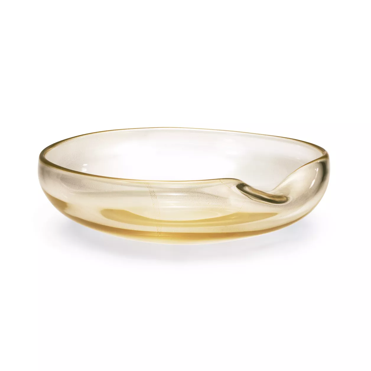 Peretti’s Thumbprint design is one of her most famous creations. Dish in handmade, mouth-blown Venetian glass with 24k gold leaf. 11" diameter. Original designs copyrighted by the Nando and Elsa Peretti Foundation.