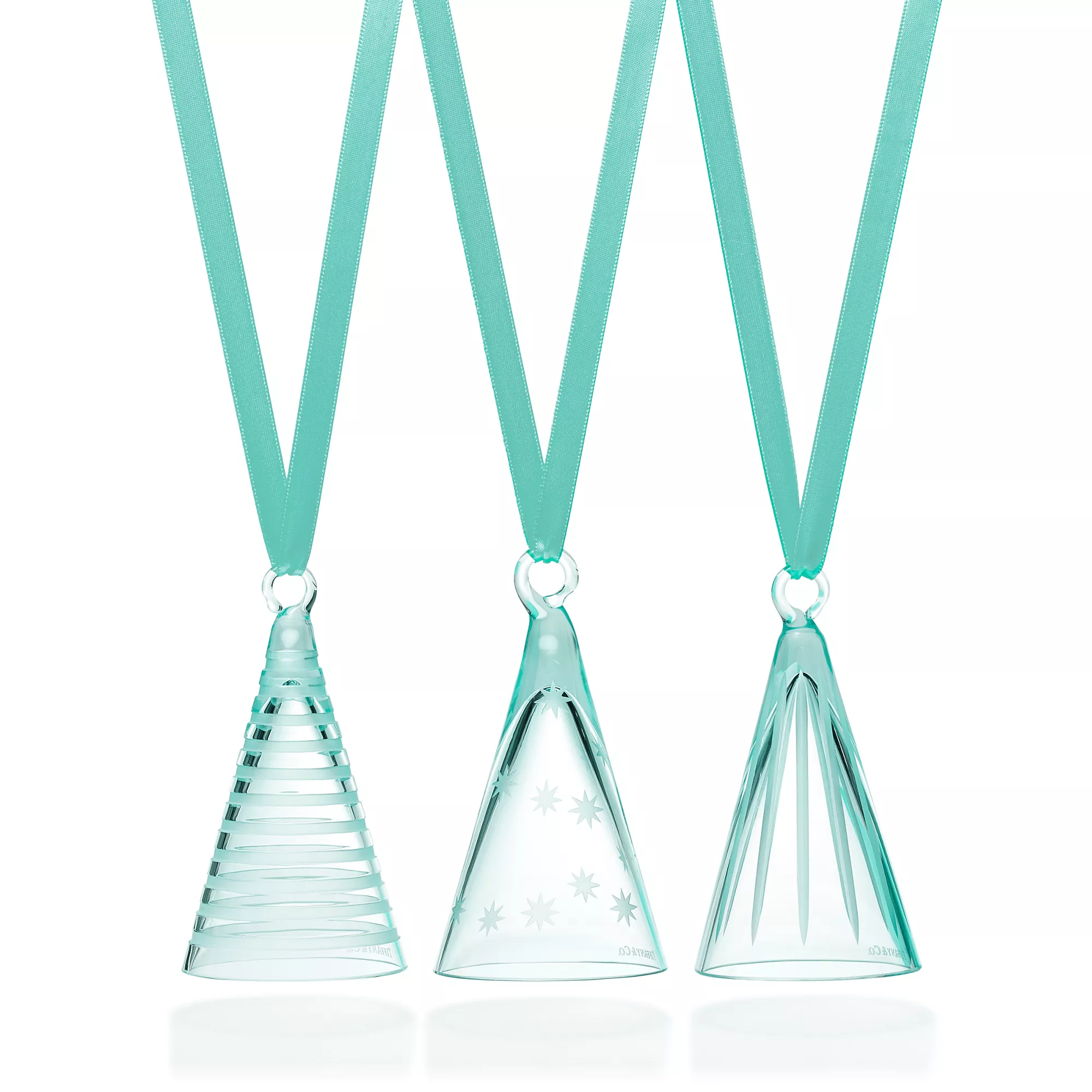 Celebrate the Christmas season with timeless Tiffany designs. Add a touch of Tiffany Blue® to your decorations year after year with this set of three crystal ornaments, featuring three design motifs with playful stripe and star patterns.