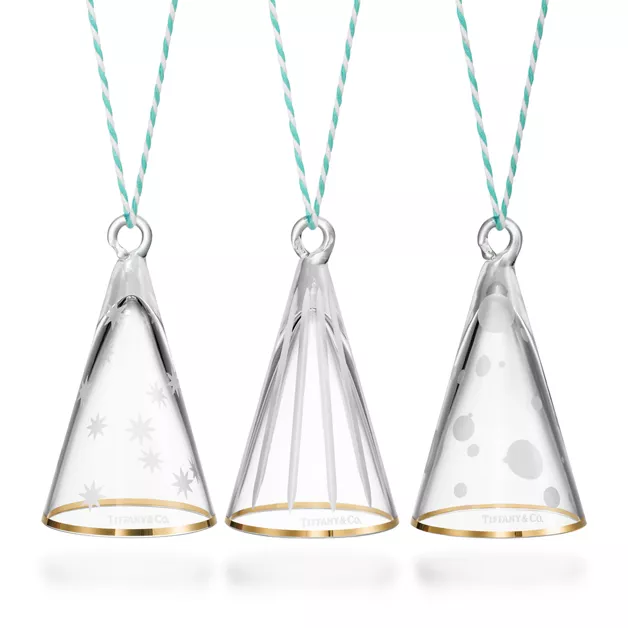Celebrate the Christmas season with timeless Tiffany designs. Featuring classic Christmas motifs, our collection of ornaments ensures your tree is best dressed year after year. This set of three gold-painted crystal glass tree ornaments add a touch of Tiffany to any home. When the season changes, store your ornaments in the keepsake Tiffany Blue® bag.