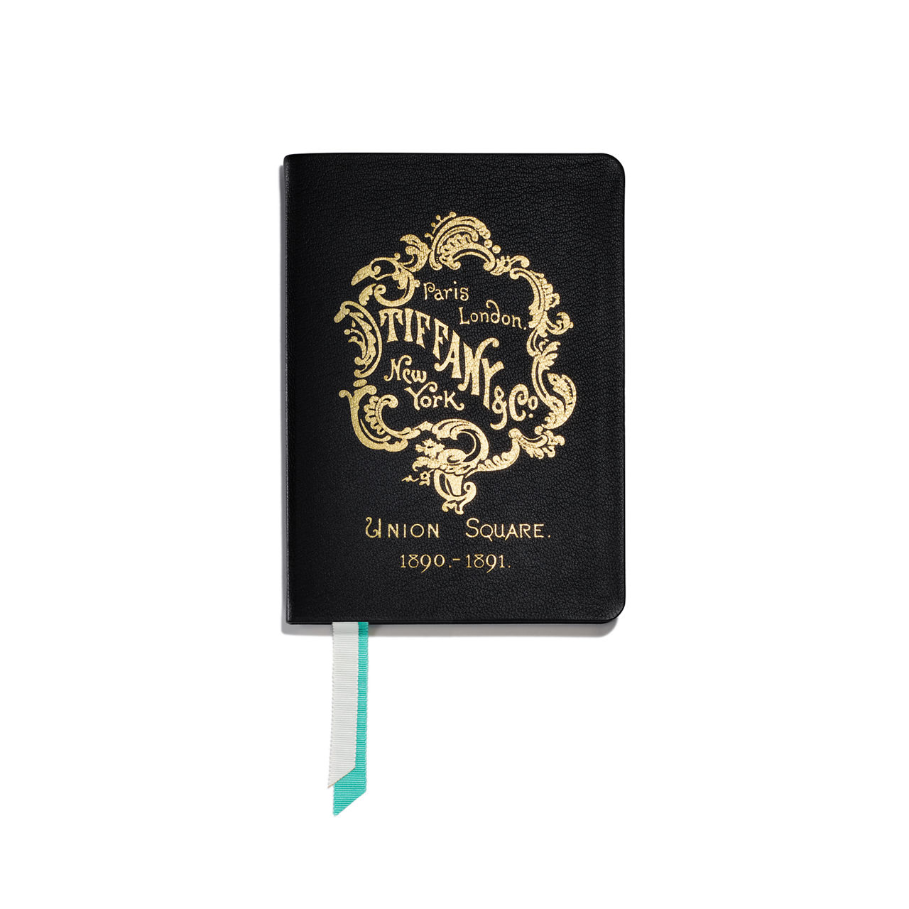 Inspired by the House’s Blue Book covers from the 1890s, this black leather-bound notebook features gilded page edges, metallic foiling, Tiffany Blue® accents and grosgrain ribbons for placeholding. Blank and lined pages offer two canvases for notetaking.
