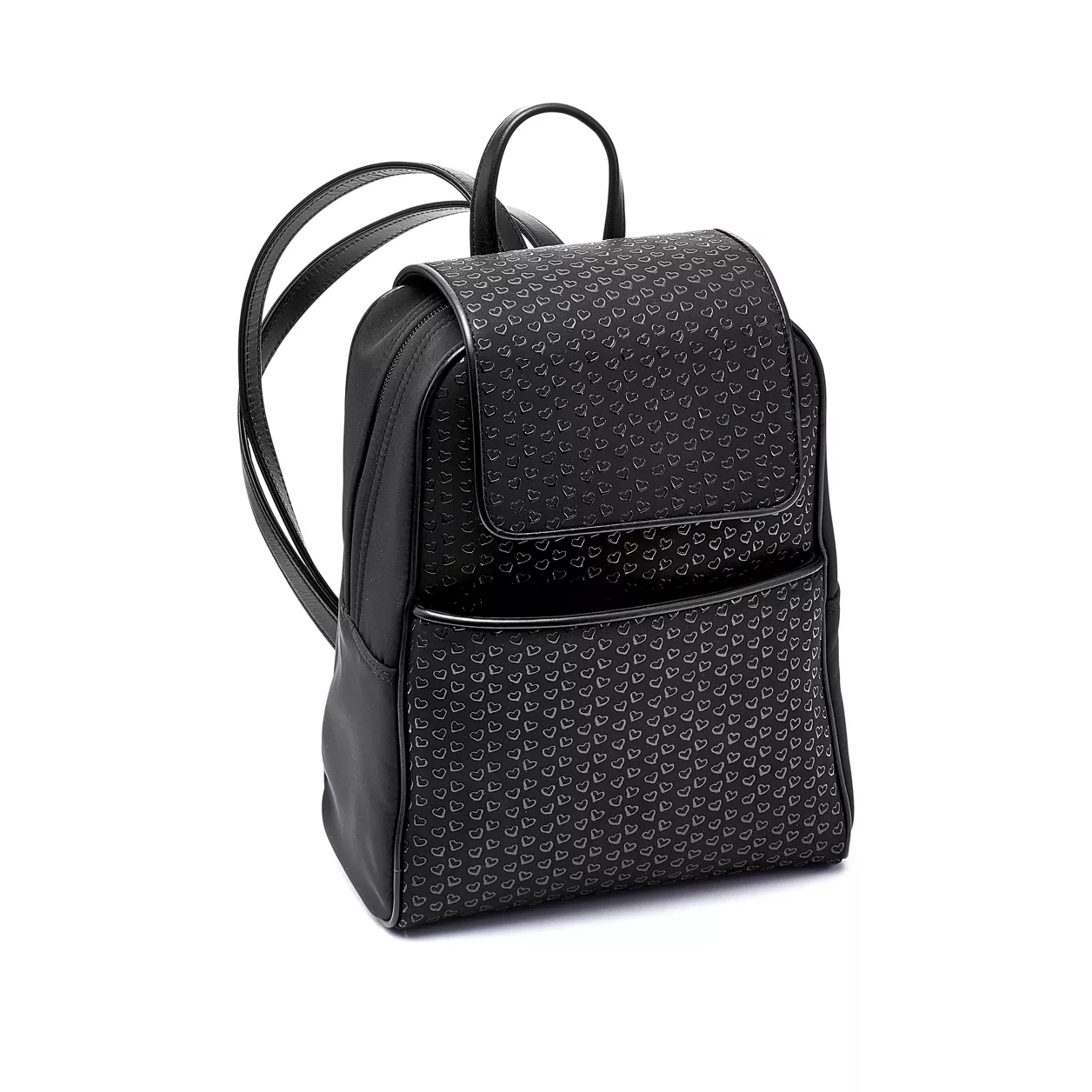 Fine leather featuring Peretti’s most celebrated icon. After dyeing the leather, each Open Heart is painted with lacquer using an ancient Japanese technique known as “inden.” Backpack in black leather with lacquered Open Hearts. 11.75 x 2.25 x 8.75". Original designs copyrighted by the Nando and Elsa Peretti Foundation.