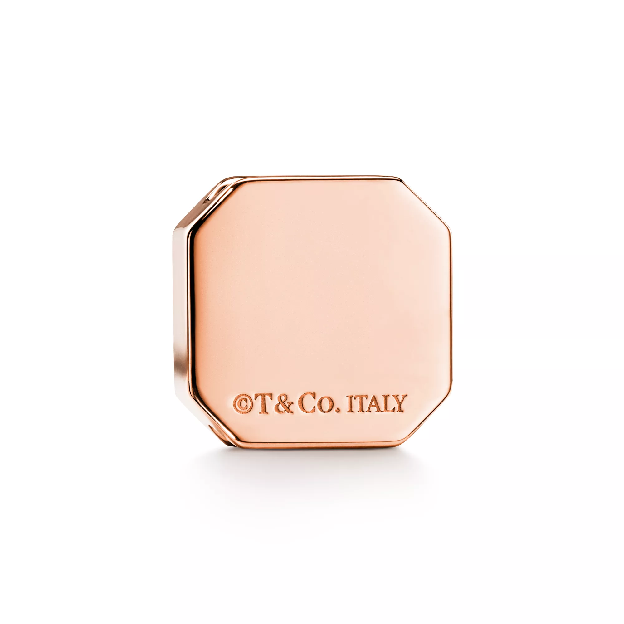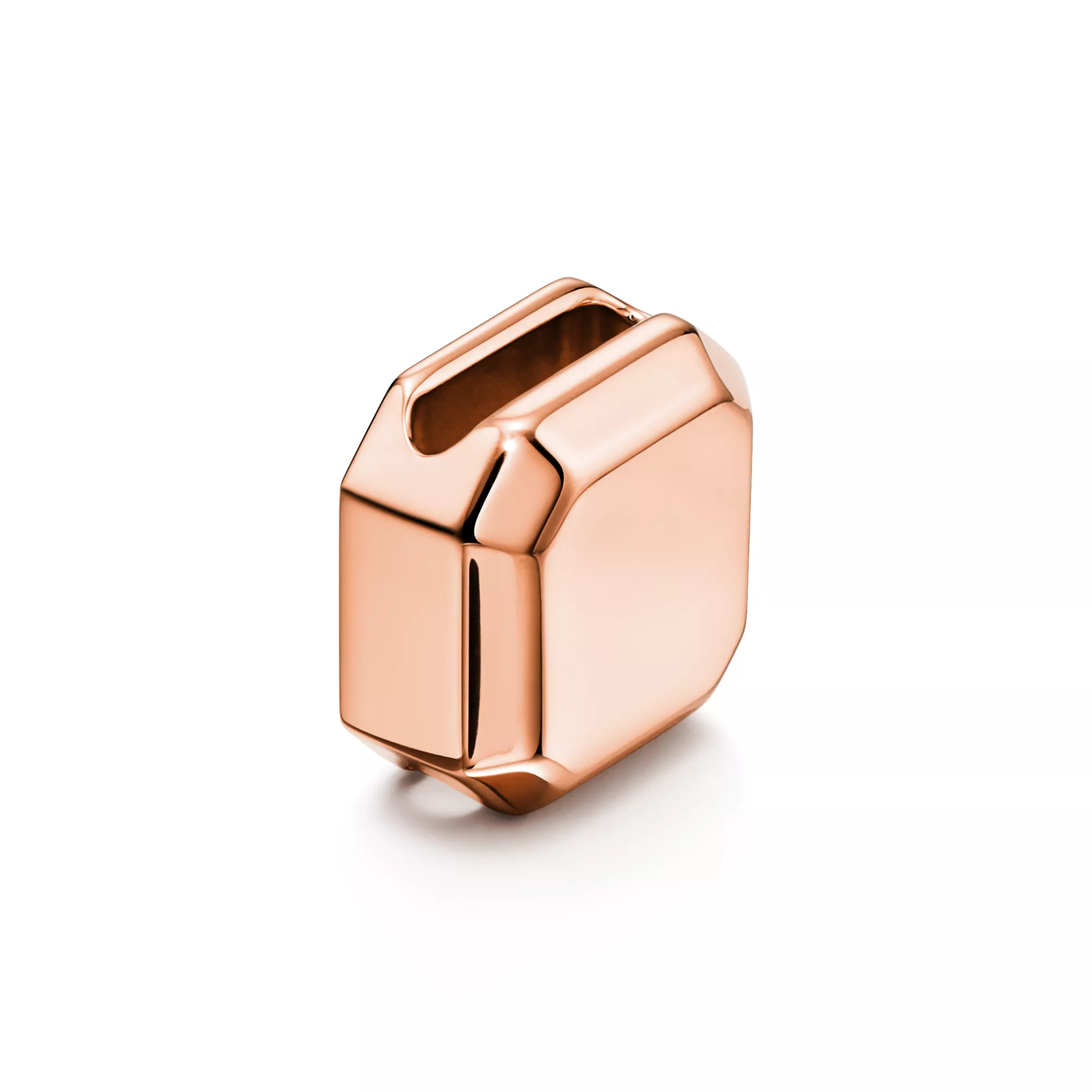 This faceted metal scarf ring is inspired by the innovative mixed-cut diamond of our Tiffany True engagement ring. Crafted of 18k rose gold-plated brass with our signature attention to detail, it adds a striking touch to your Tiffany ribbon scarf.
