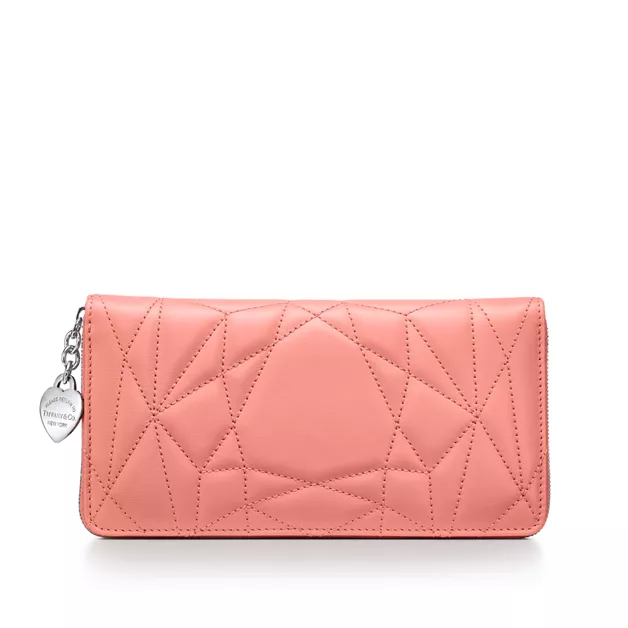 Inspired by one of the House’s most distinctive designs, the heart-shaped Return to Tiffany™ handbags are crafted in supple leather and embellished with charm and chain link accents that nod to our iconic jewellery. Add a playful touch to every day with this large padded wallet. Using a quilting technique, this three-dimensional padded design is inspired by the faceting of our gemstones. It features a palladium-plated heart tag as a zipper pull and multiple card slots to keep essentials organised.