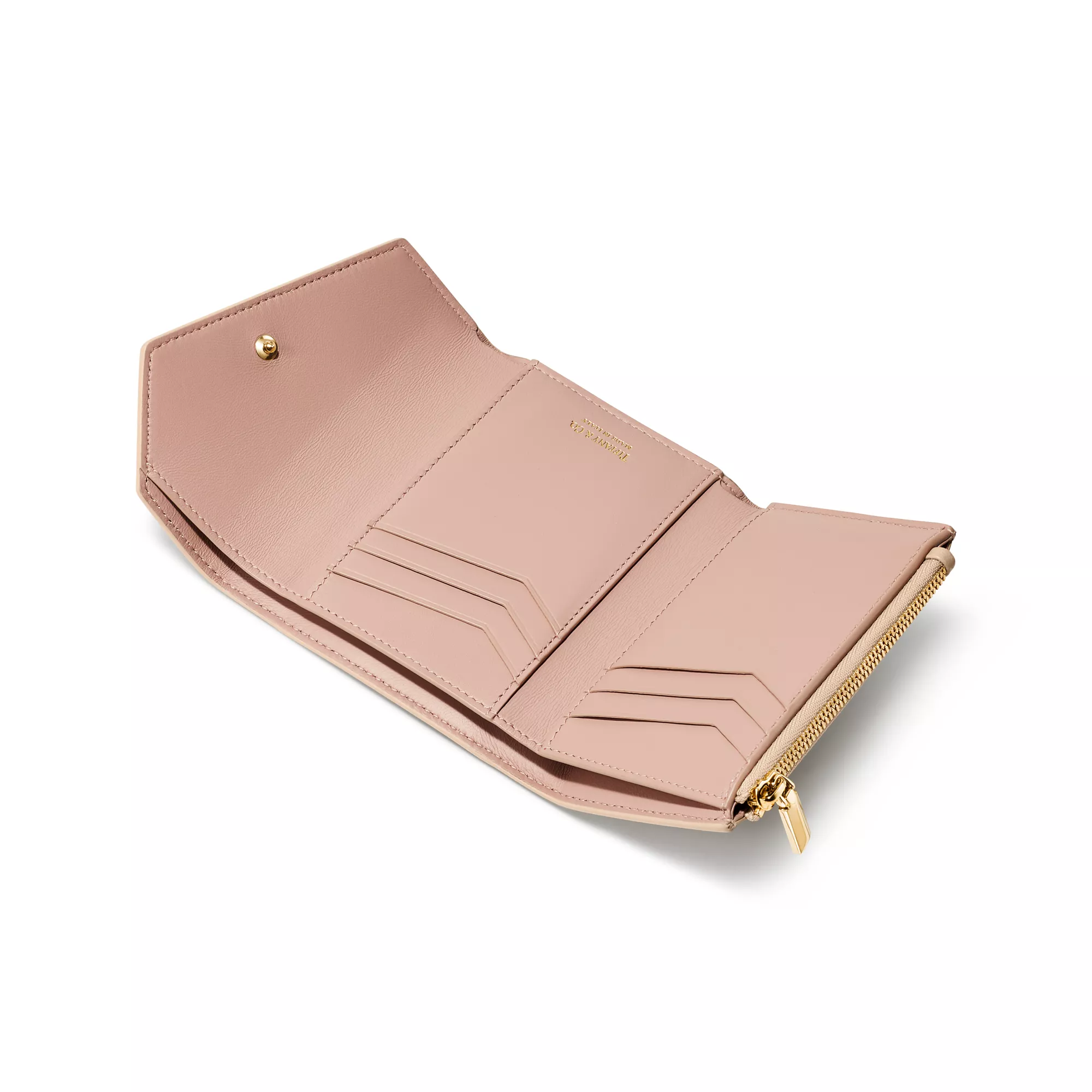 Inspiring, empowering and above all, unwavering, the Tiffany T collection reminds us of the connections we feel but cannot always see. Tiffany T wallets are crafted in leather with details that nod to our iconic Tiffany T collection. In hues inspired by our superlative gemstones, the Tiffany T wallet is a brilliant way to show your true colours. It features exterior and interior pockets, an asymmetrical snap closure and a Tiffany T logo on the front.