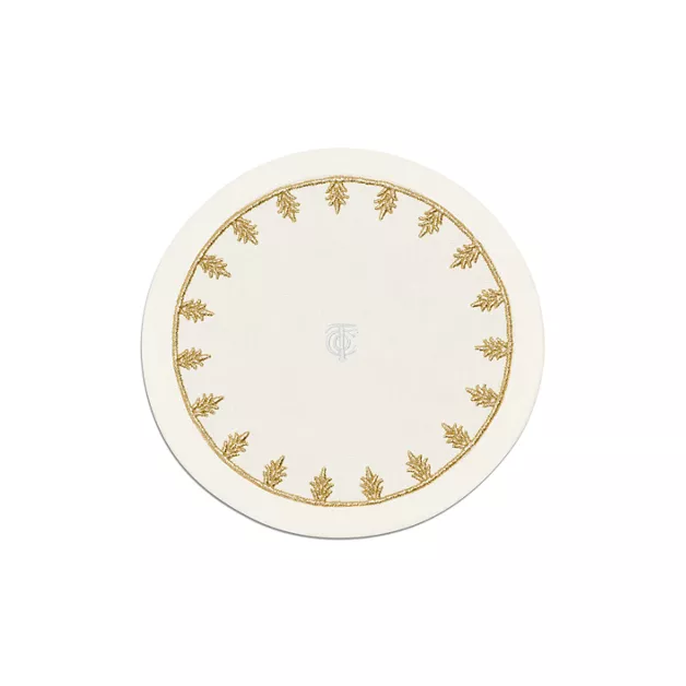 Tiffany Crest:Coaster in Embroidered White Linen, 1 Tiffany Crest:Coaster in Embroidered White Linen image number 1 Tiffany Crest:Coaster in Embroidered White Linen, 2 Tiffany Crest:Coaster in Embroidered White Linen image number 2