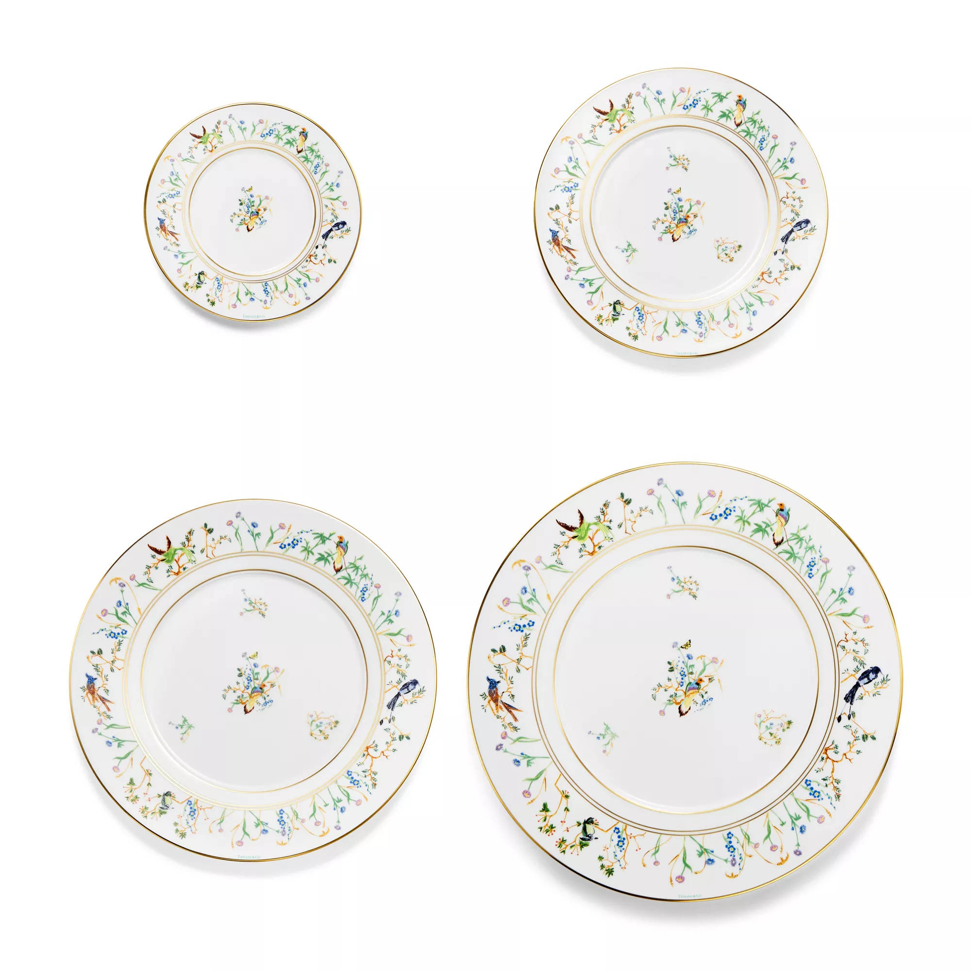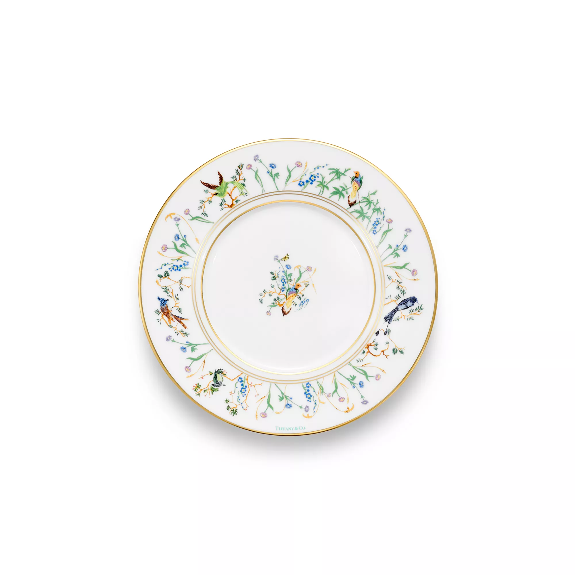 Featuring flora and fauna motifs first introduced on 19th-century Tiffany & Co. hollowware, the Tiffany Jardin collection captures the beauty of the natural world. Delicate illustrations of birds, butterflies and flowers teem with life; and a hand-painted gold rim adds a refined finish to this porcelain bread and butter plate. Set your table with the complete Tiffany Jardin collection or style with other Tiffany & Co. dinnerware to create an unexpected look.