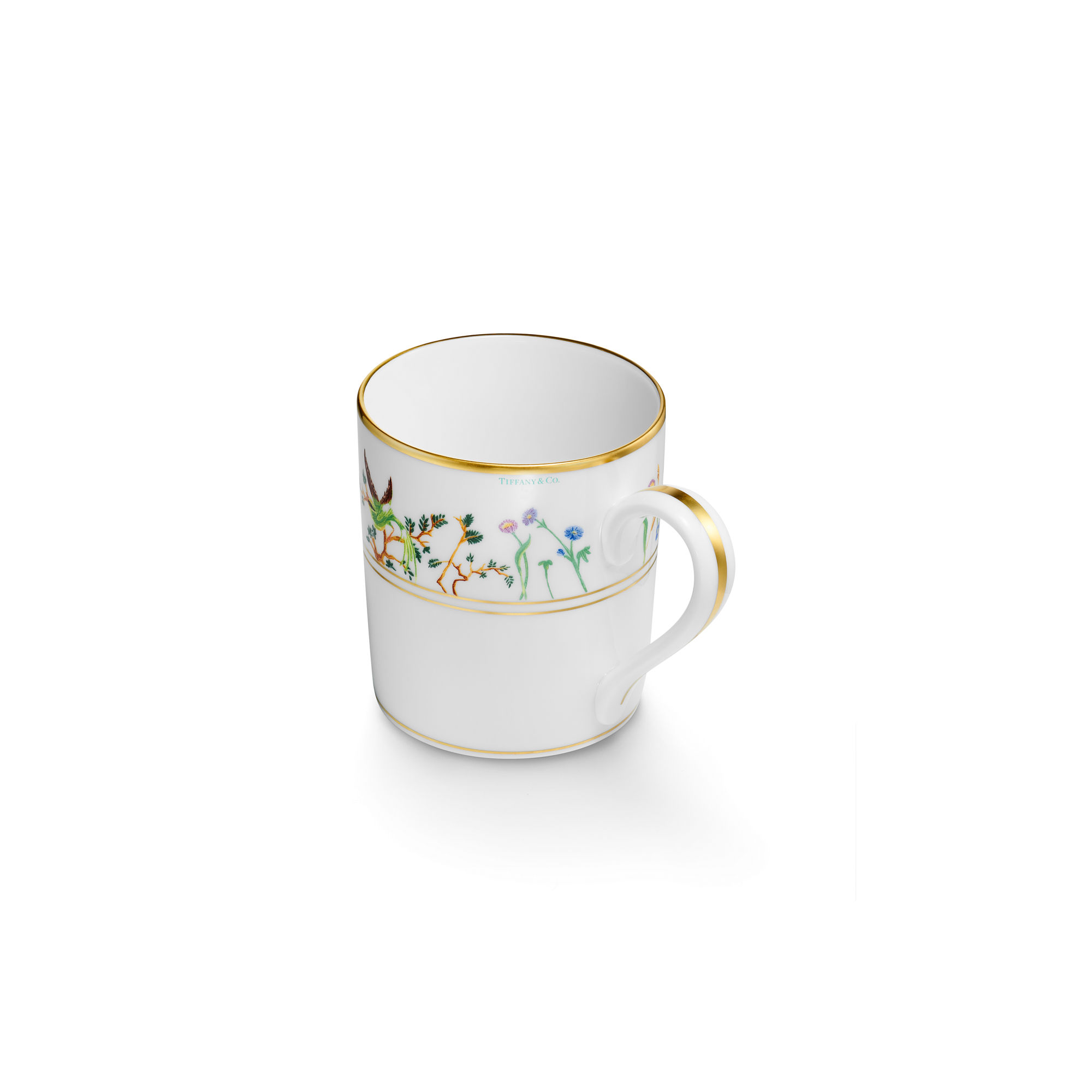 Featuring flora and fauna motifs first introduced on 19th-century Tiffany & Co. hollowware, the Tiffany Jardin collection captures the beauty of the natural world. Delicate illustrations of birds, butterflies and flowers teem with life; and a hand-painted gold rim adds a refined finish to this porcelain mug. Set your table with the complete Tiffany Jardin collection or style with other Tiffany & Co. tableware to create an unexpected look.