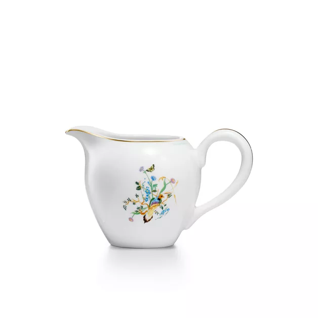 Featuring flora and fauna motifs first introduced on 19th-century Tiffany & Co. hollowware, the Tiffany Jardin collection captures the beauty of the natural world. Delicate illustrations of birds, butterflies and flowers teem with life; and a hand-painted gold rim adds a refined finish to this porcelain creamer. Set your table with the complete Tiffany Jardin collection or style with other Tiffany & Co. tableware to create an unexpected look.