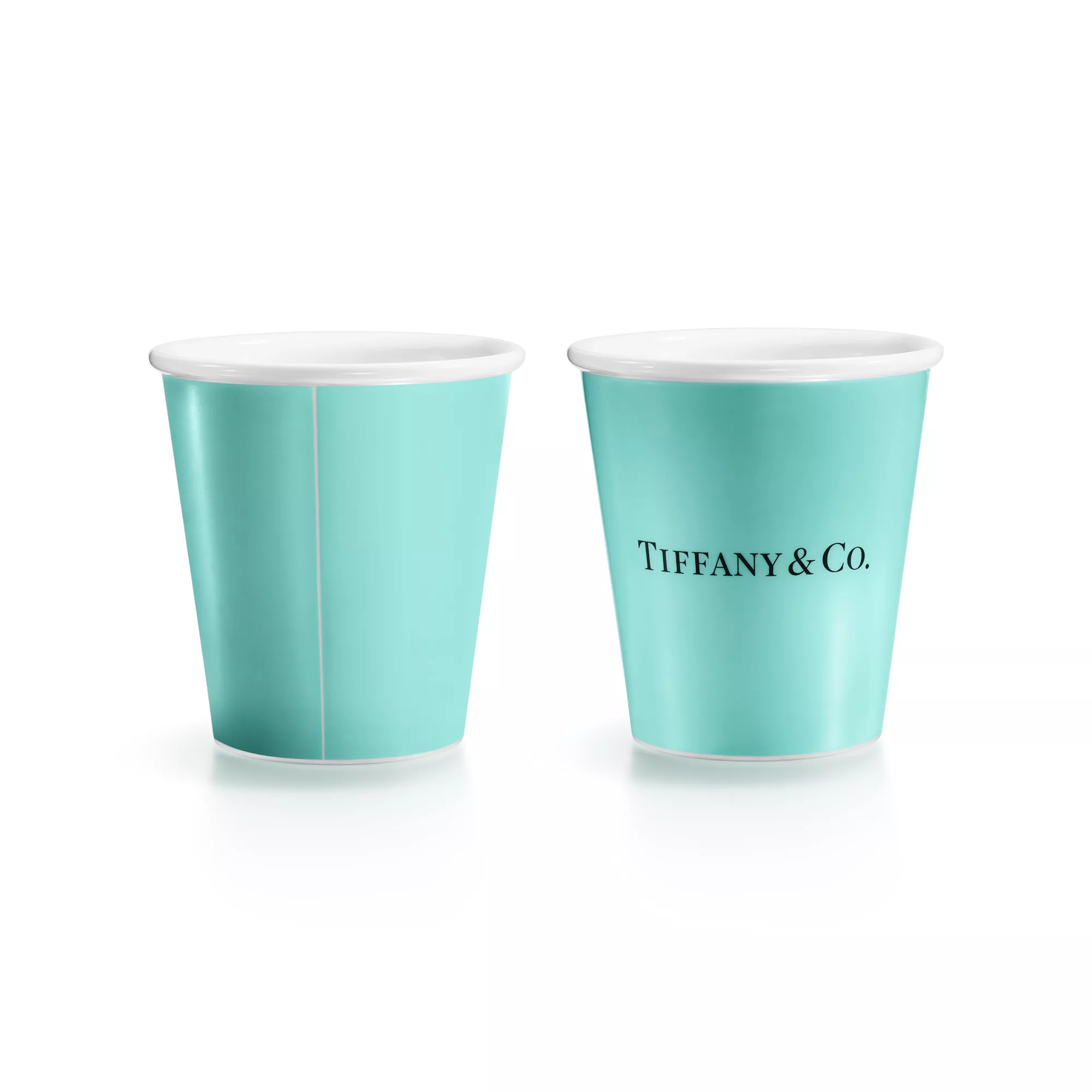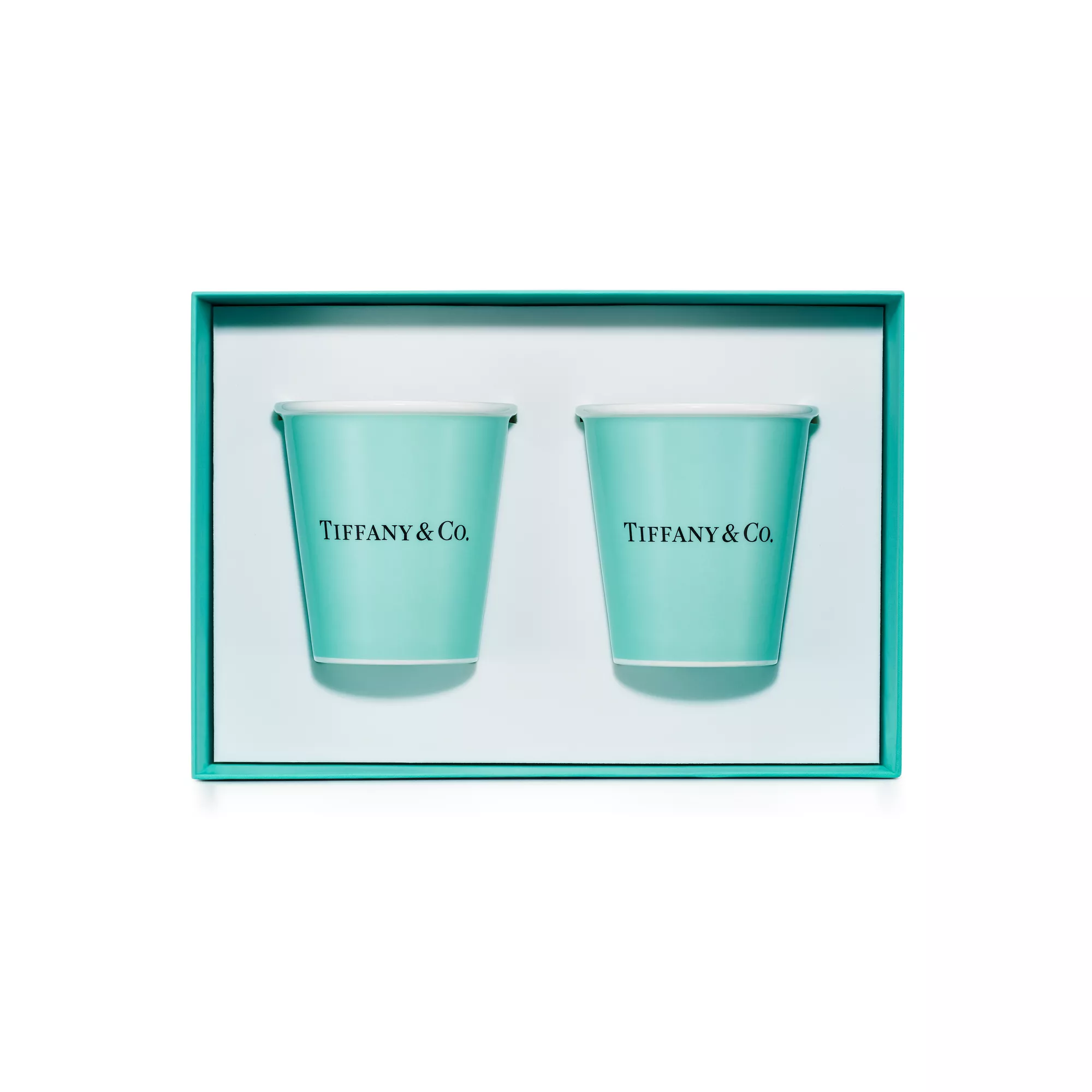 Tiffany artisans transform utilitarian items into handcrafted works of art. Crafted in bone china, this contemporary set of two coffee cups features our iconic Tiffany Blue® hue.