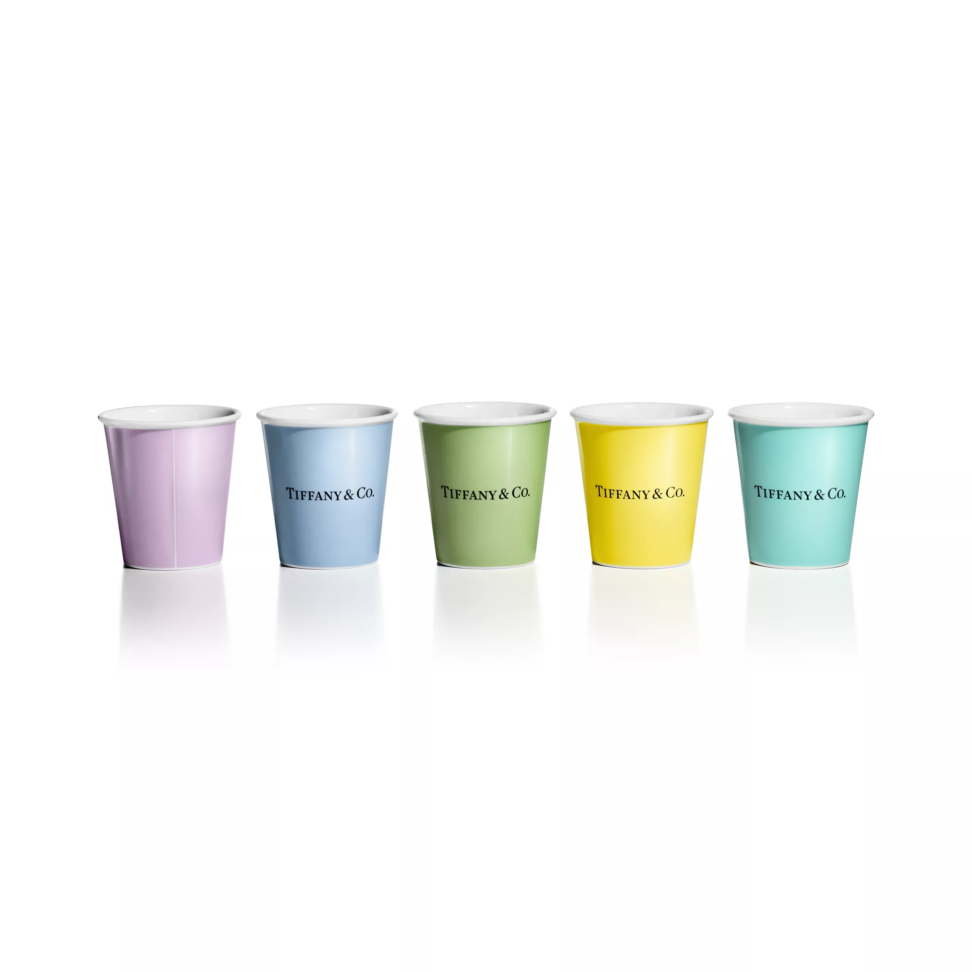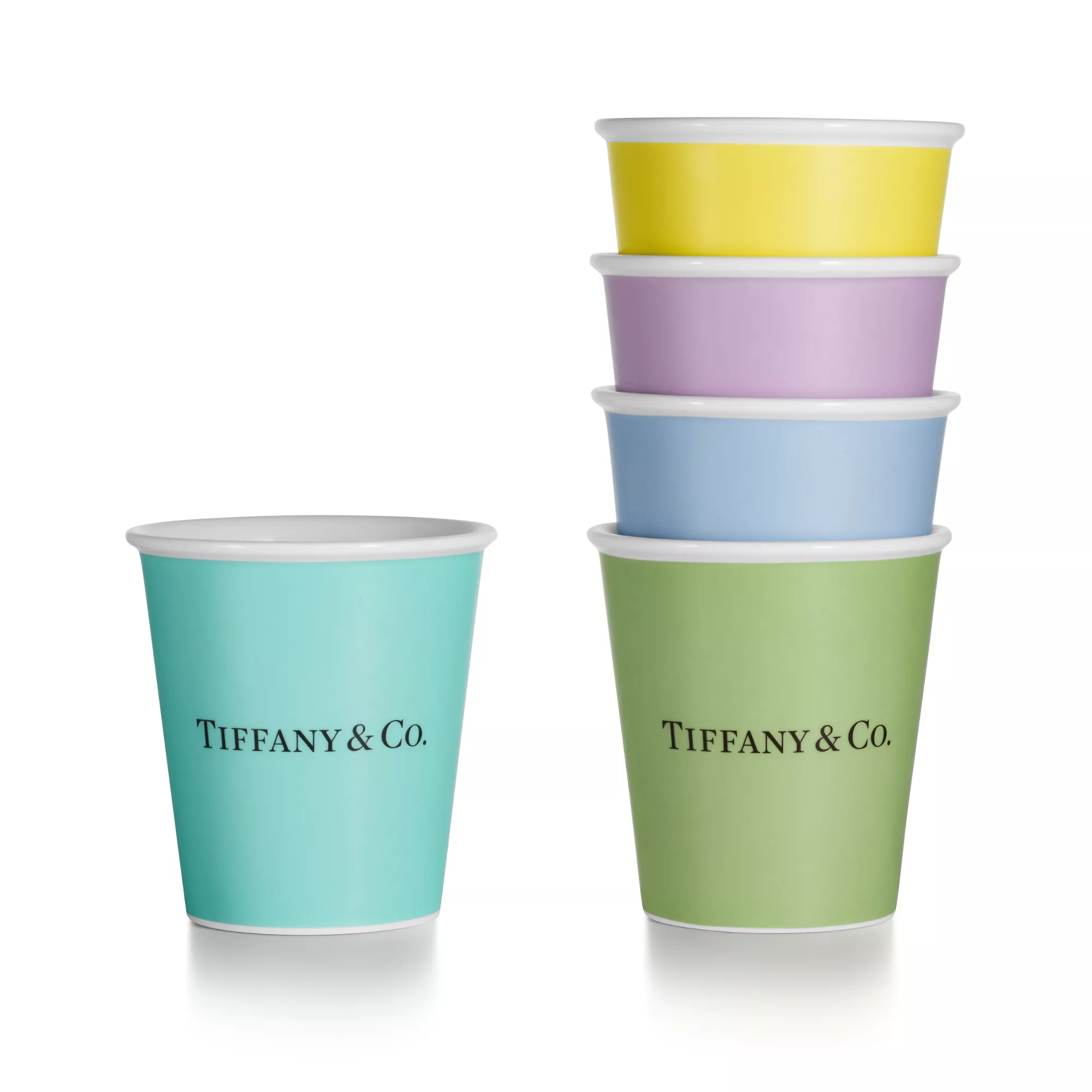 Tiffany artisans transform utilitarian items into handcrafted works of art. Crafted in bone china, this contemporary set of five coffee cups features our iconic Tiffany Blue® hue and a vivid palette inspired by our world-renowned gemstones.