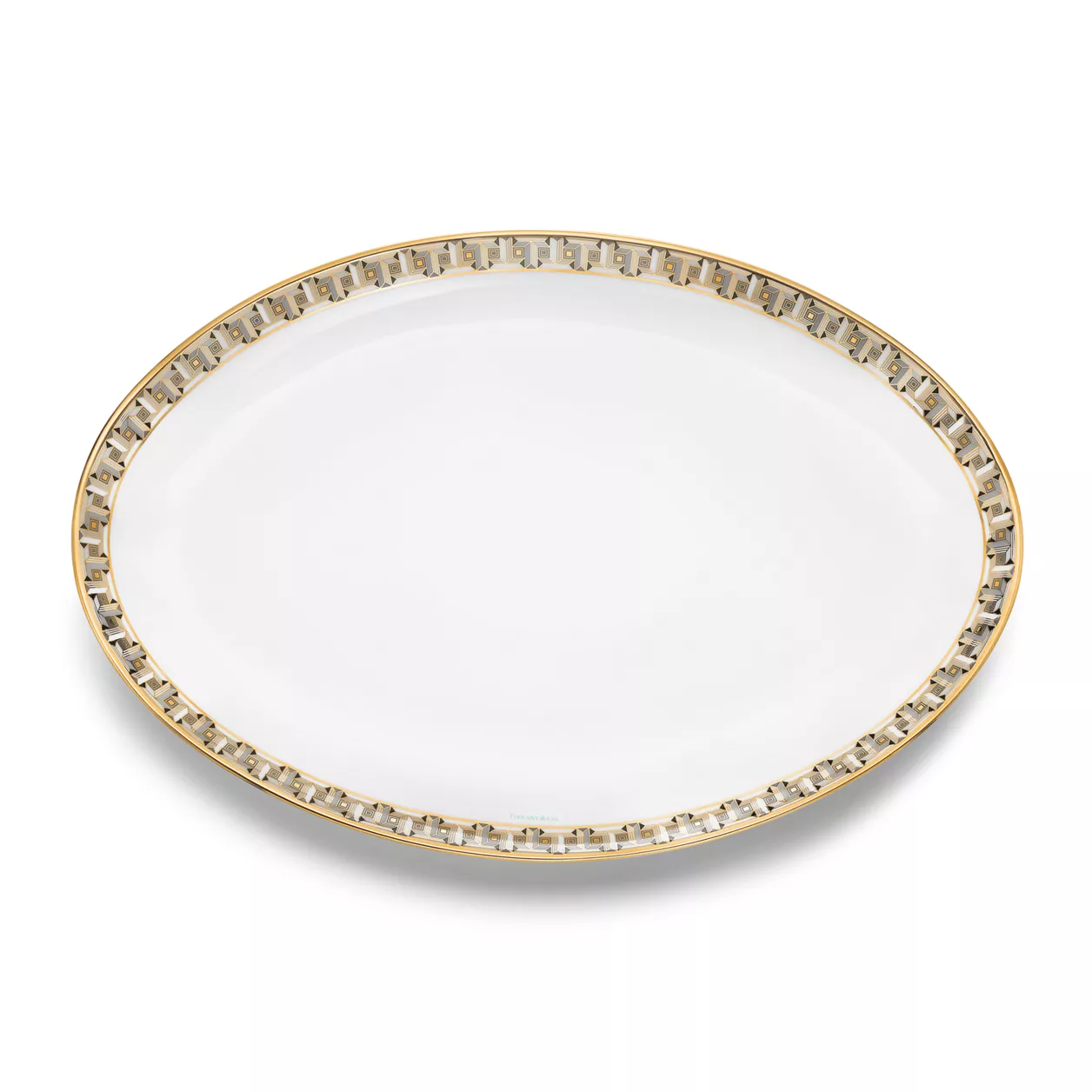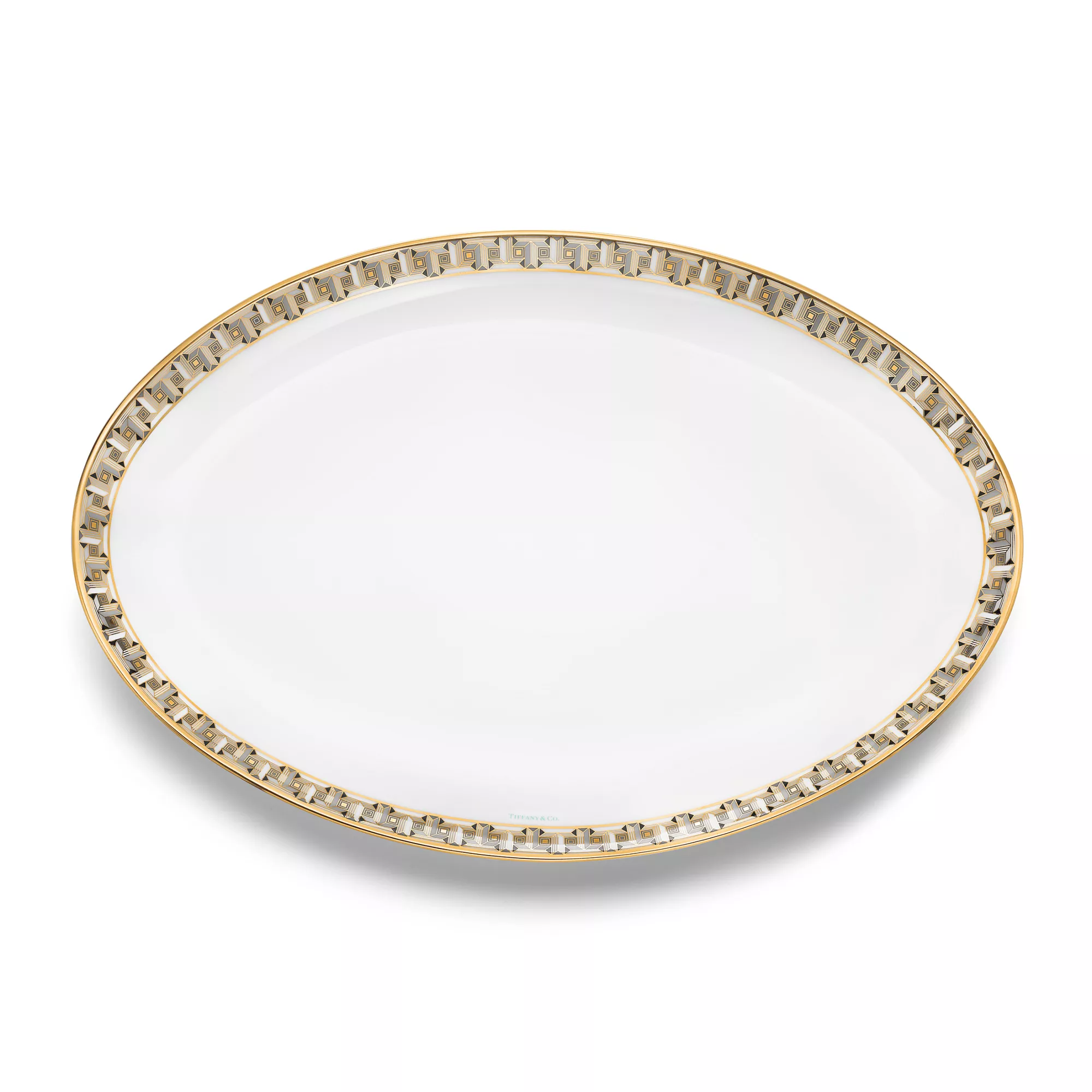 Inspired by the jewellery collection of the same name, Tiffany T True dinnerware brings radiance to the table. Crafted from Limoges porcelain, a geometric interpretation of the Tiffany T True motif adorns this serving platter with a hand-painted gold rim. Style with pieces from the Tiffany T True collection for a matching look or mix with our other Tiffany Home patterns.