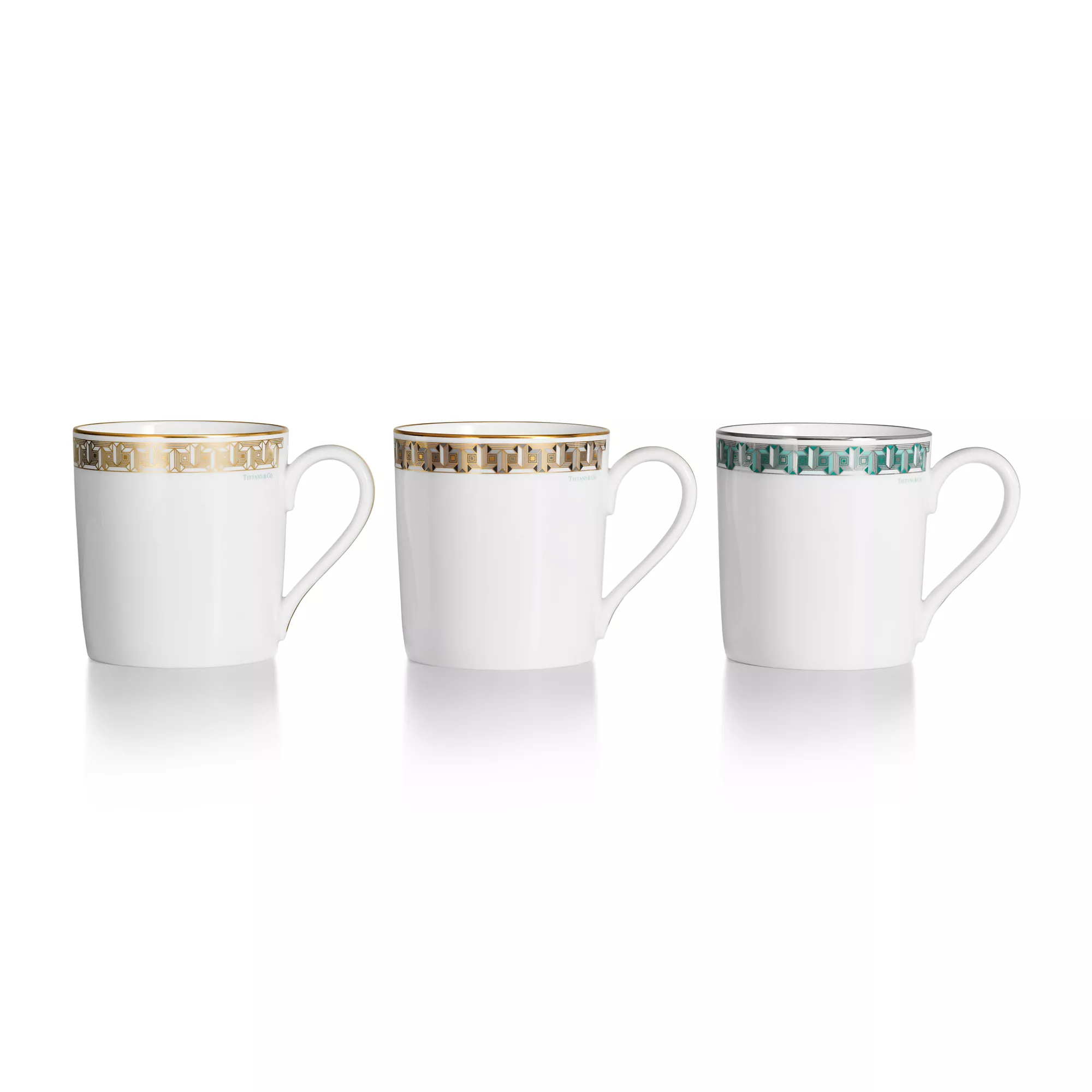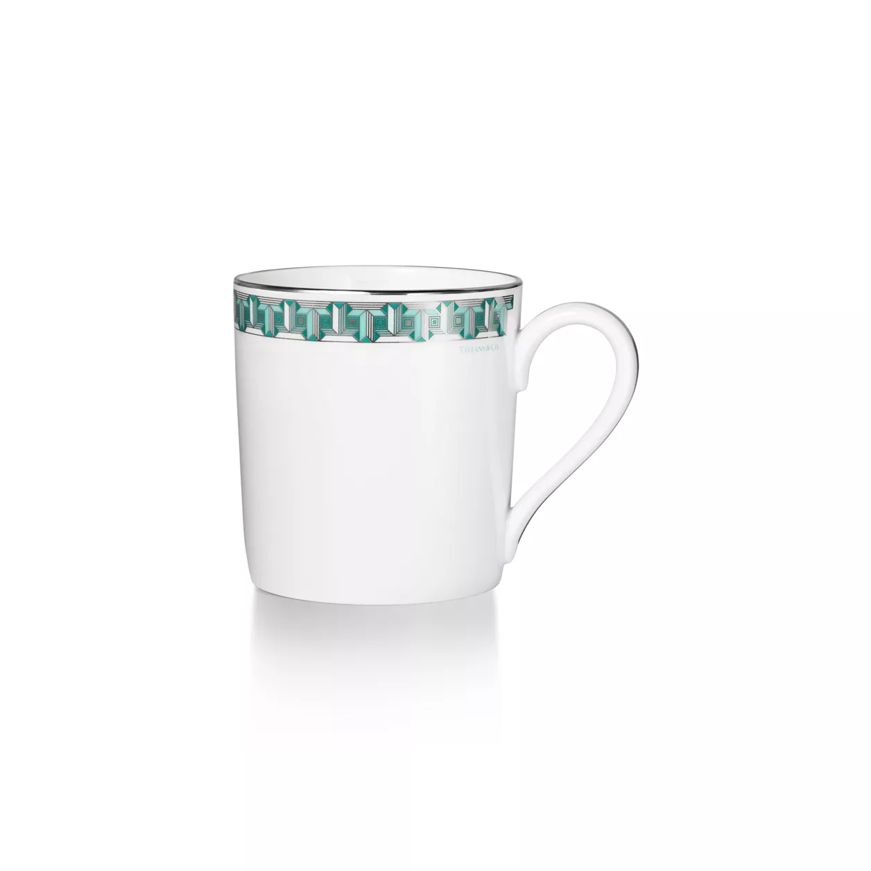 Inspired by the jewellery collection of the same name, Tiffany T True dinnerware brings radiance to the table. Crafted from Limoges porcelain, a geometric interpretation of the Tiffany T True motif adorns this mug with a hand-painted platinum rim. Mix with Tiffany T True dessert plates in different colours for a surprising table setting.