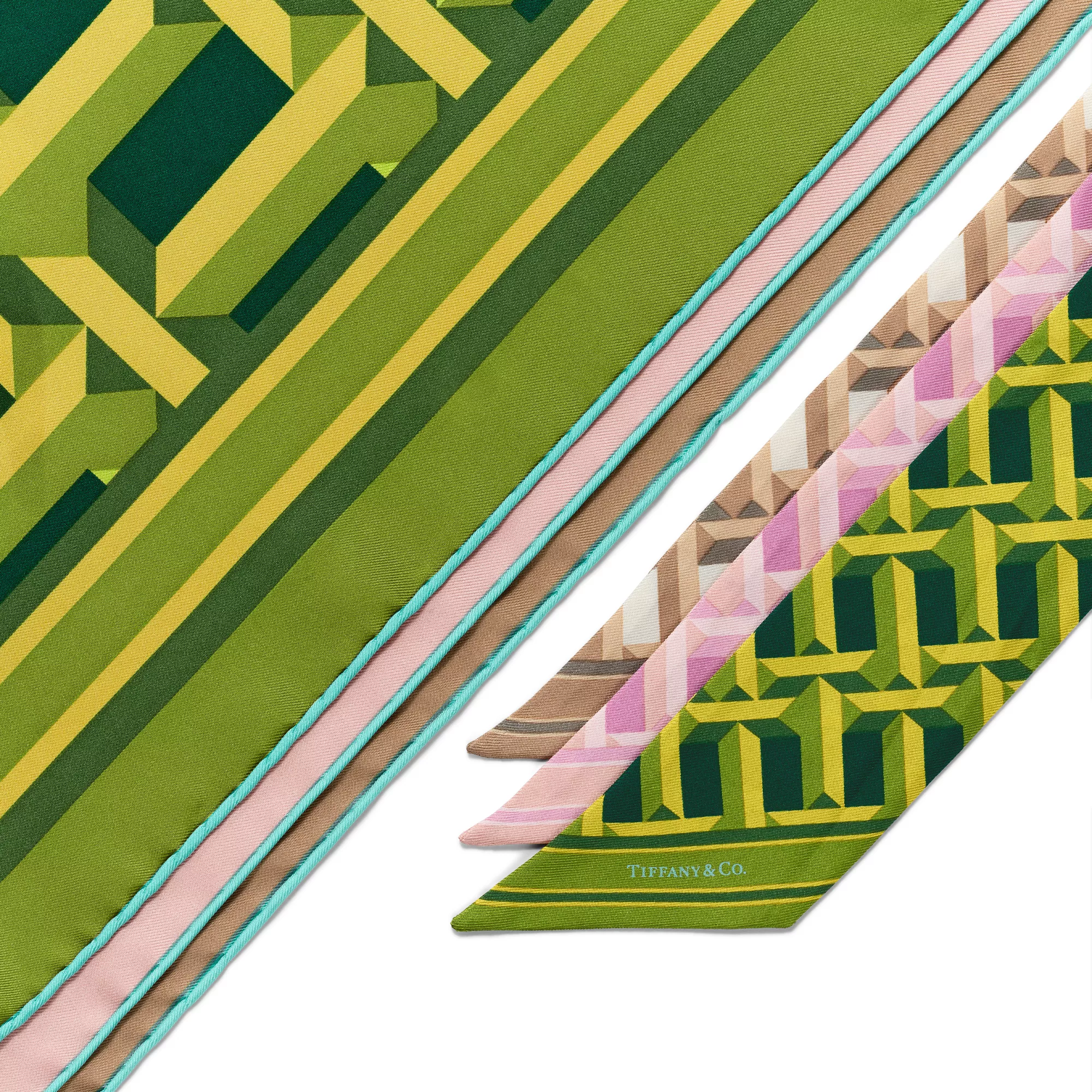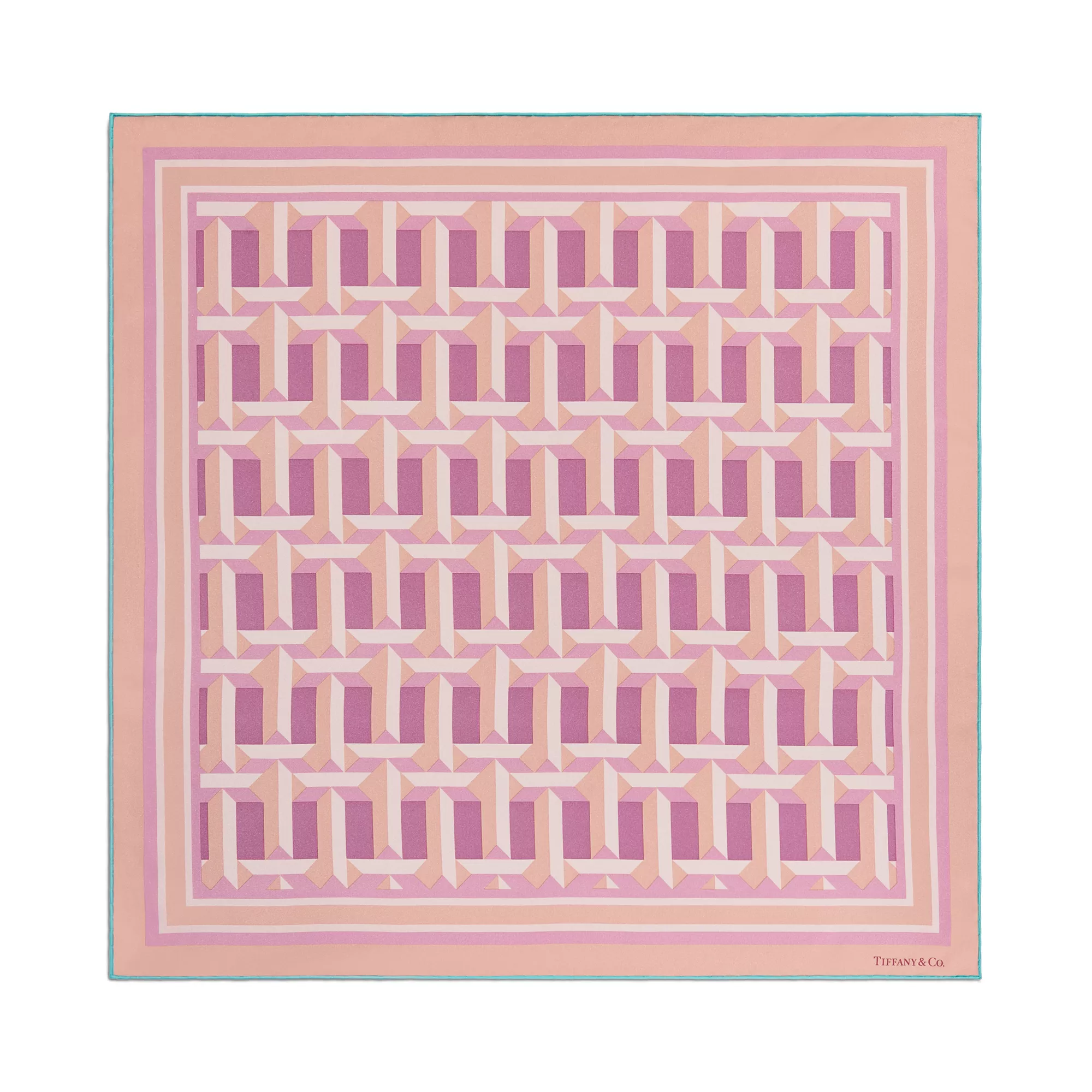 The Tiffany T collection is inspired by our favourite letter. A bold pattern of alternating Ts in a tonal crystal pink palette decorates this square silk scarf. Pair with a Tiffany scarf ring or artfully tie around your favourite handbag.