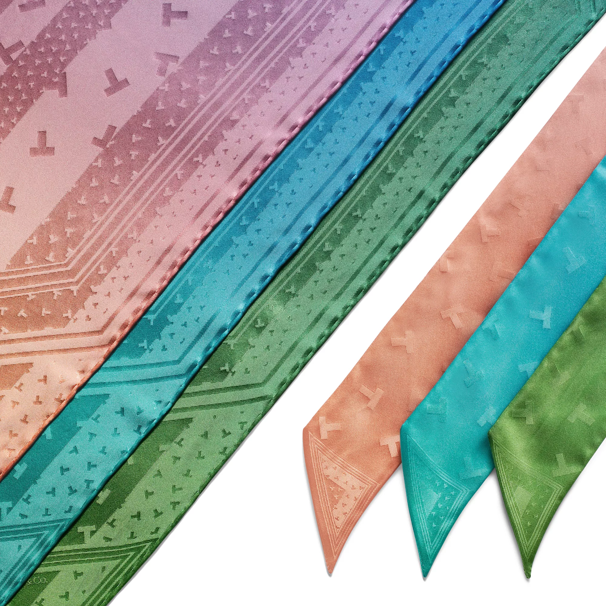 The Tiffany T collection is inspired by our favourite letter. This square scarf showcases a striking archival pattern of dancing Ts in Tiffany Blue® jacquard. Pair this style with a scarf ring or artfully tie around your handbag.