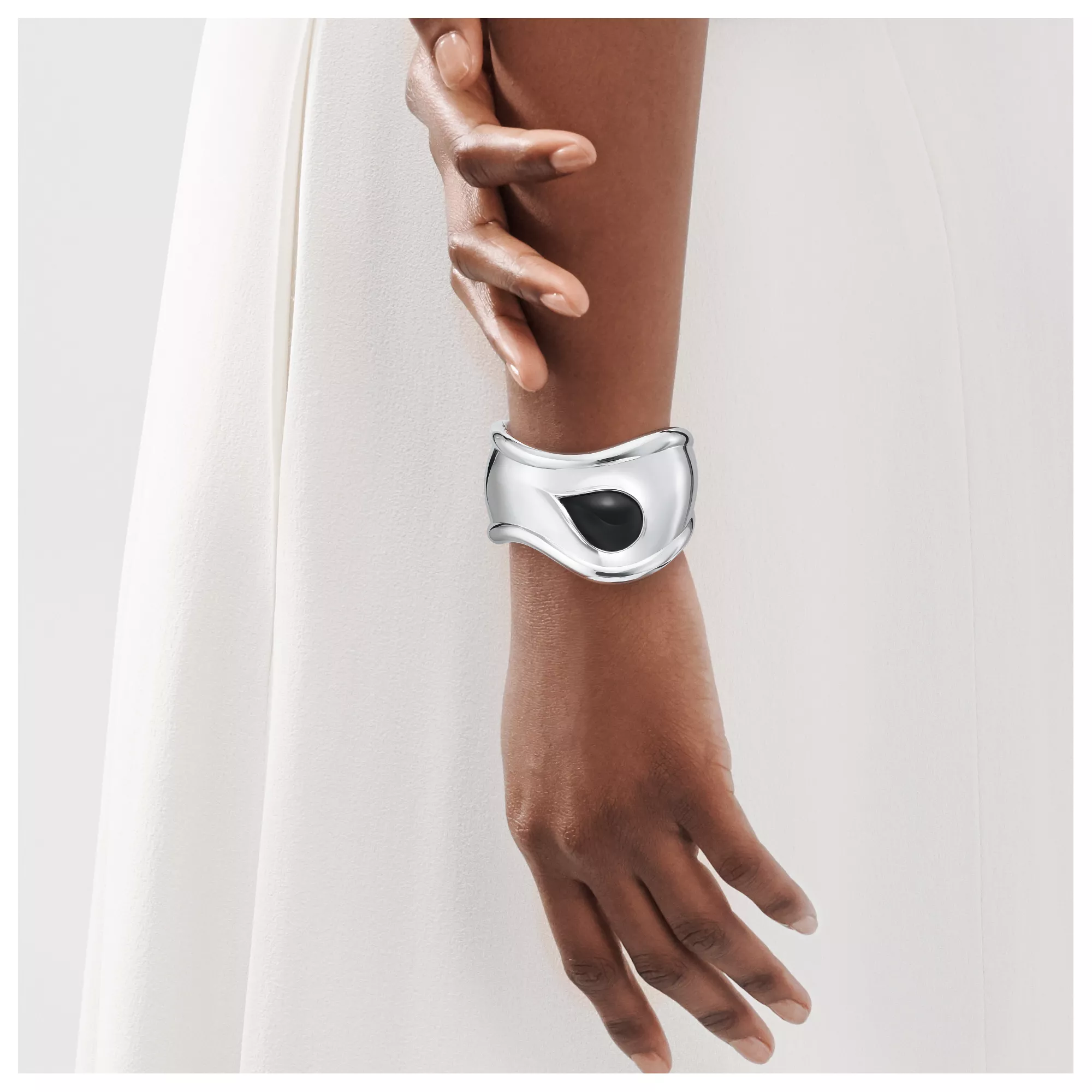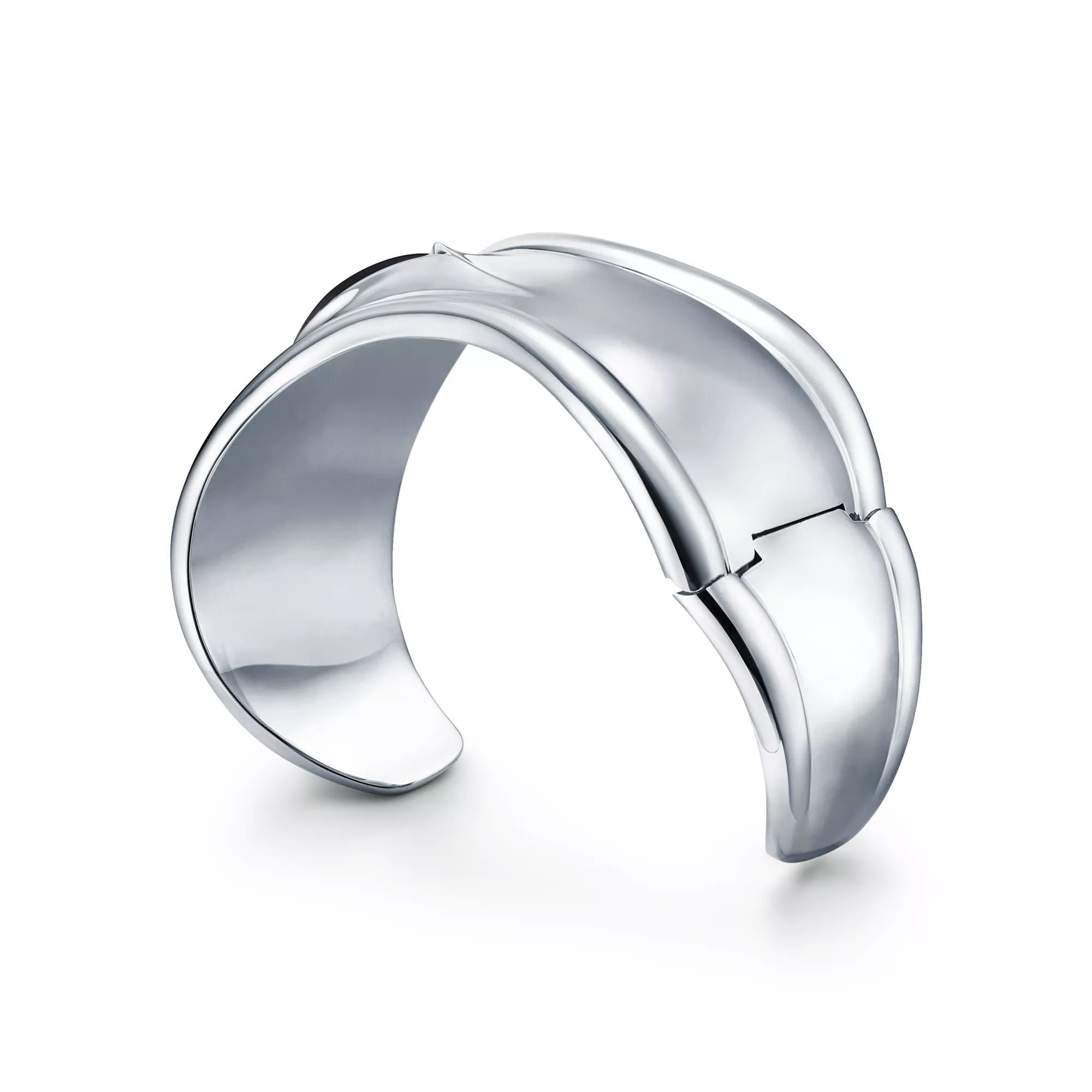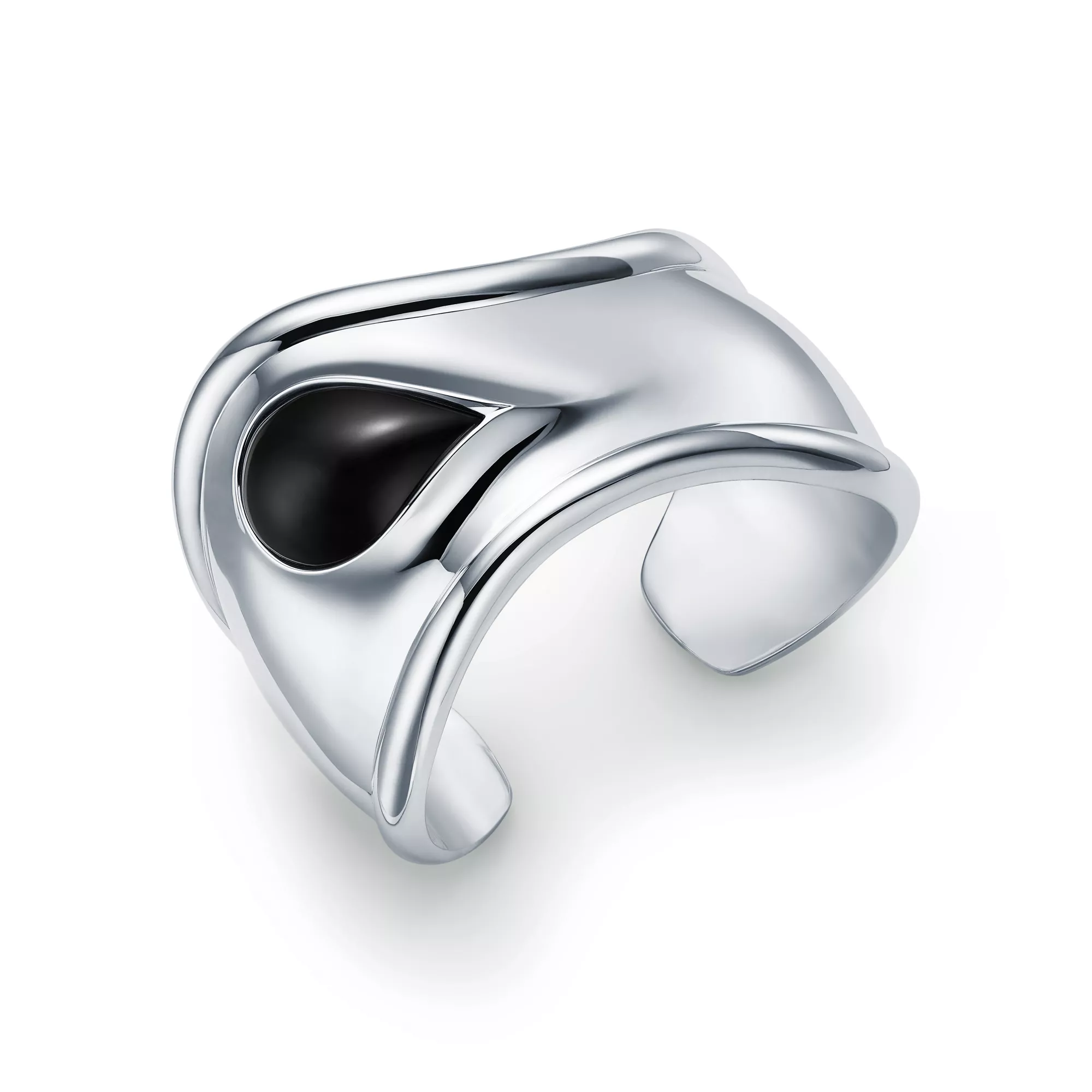 4. Elsa Peretti®:Small Bone Cuff in Sterling Silver with Black Nephrite Jade