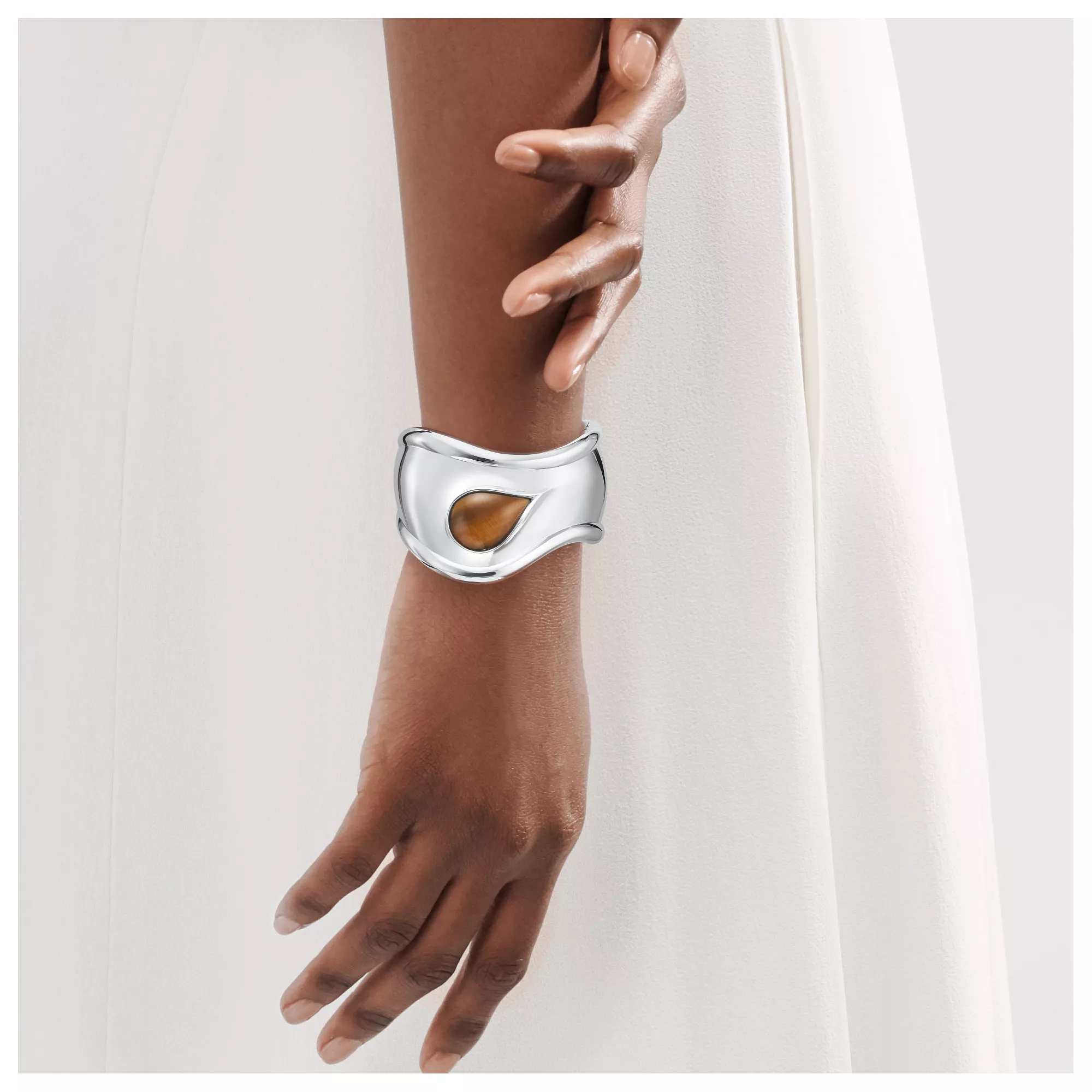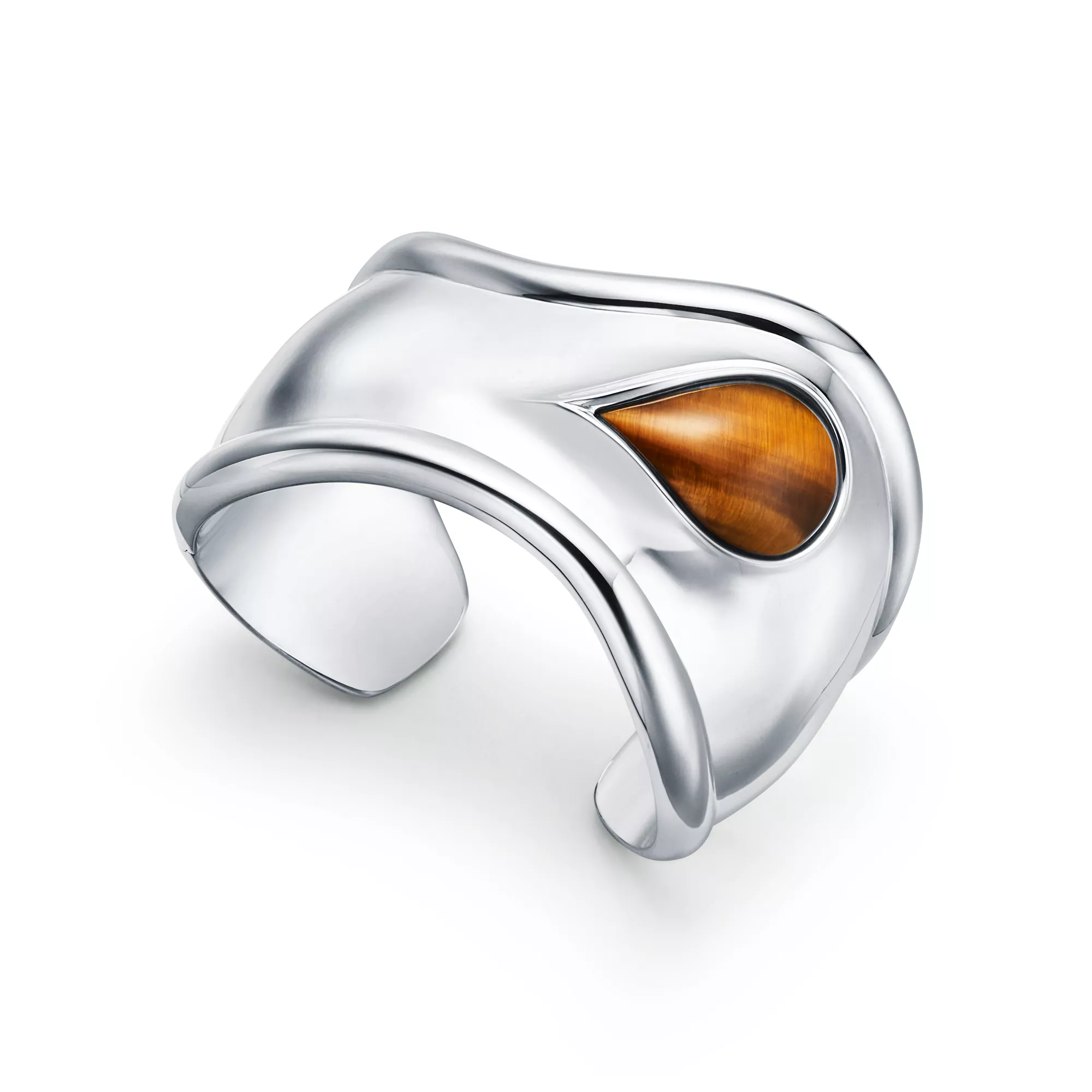 A nod to the sublime beauty found in nature, Elsa Peretti® carved stone Bone cuffs are expertly made by master craftspeople, who hand carved and inlaid each stone. Powerfully feminine with an effortless ease, the groundbreaking Bone cuff design was first introduced in the 1970s. A twist on this iconic design, this sterling silver Bone cuff honours the beauty of the hand-set tiger's eye and reflects the designer's passion for smooth, sculpted surfaces.
