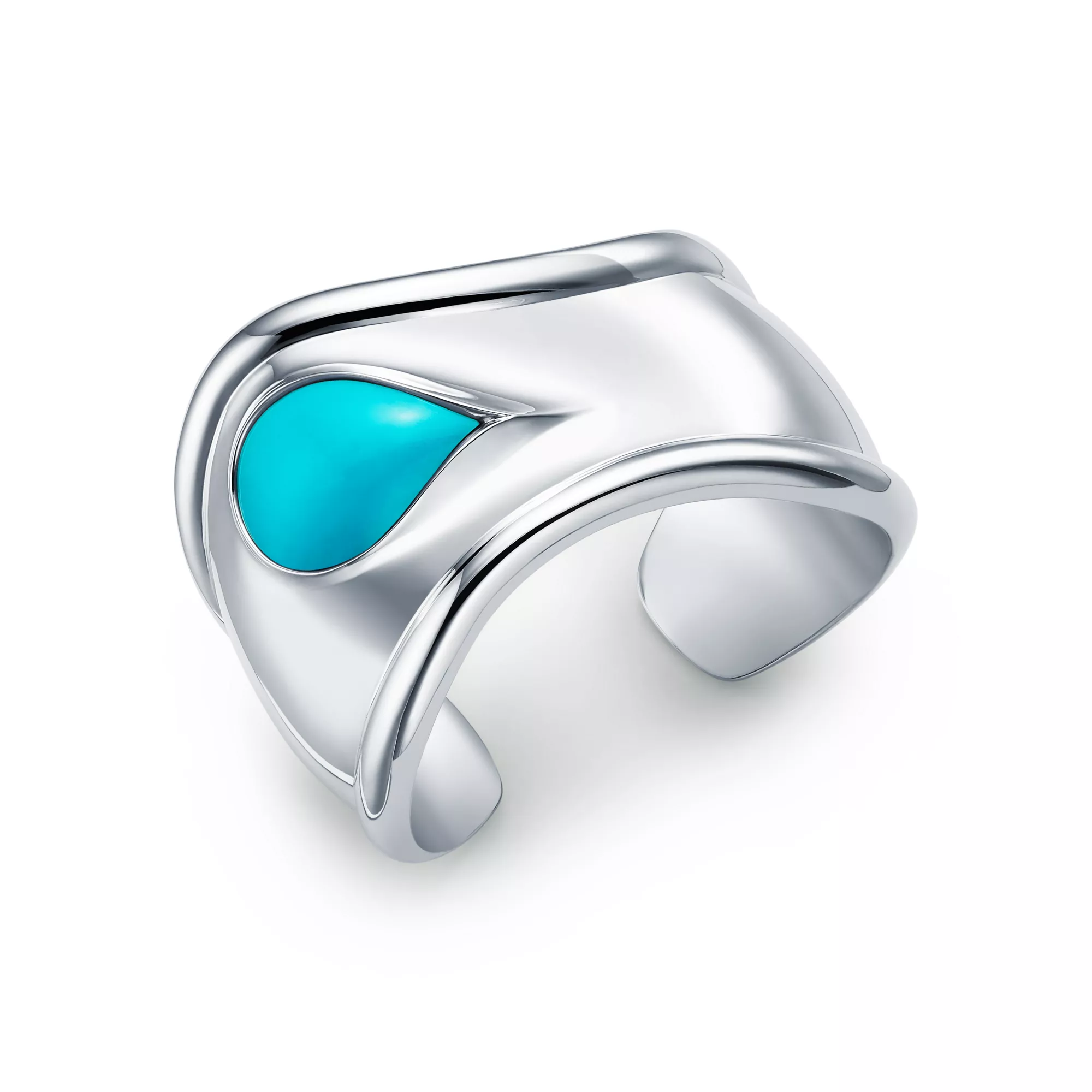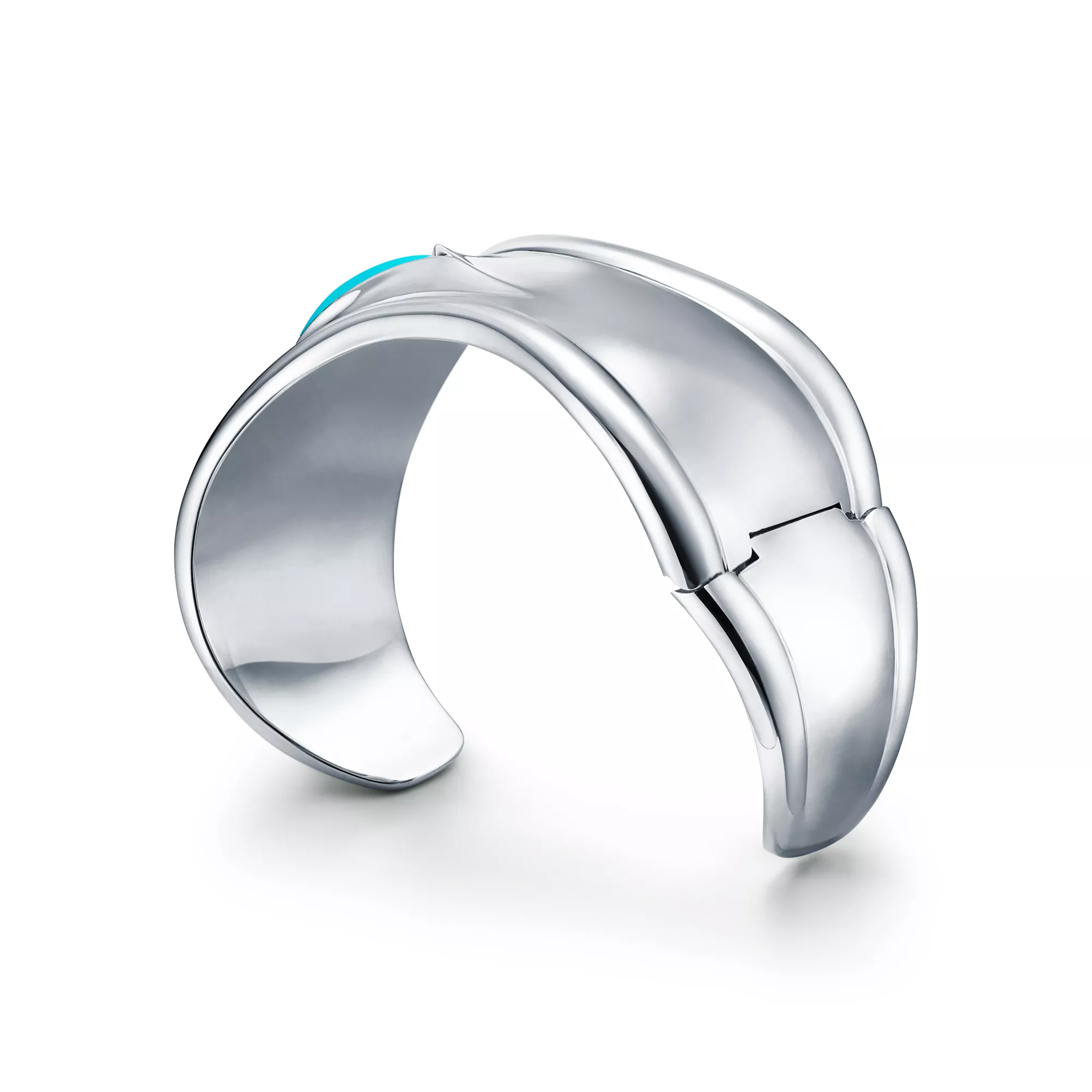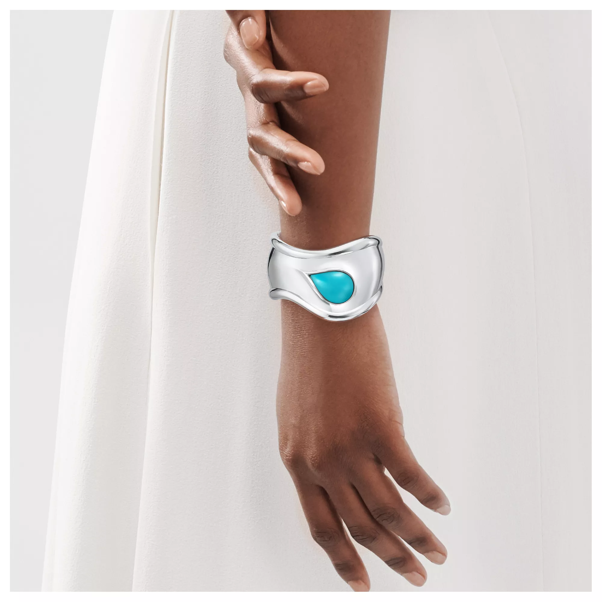 A nod to the sublime beauty found in nature, Elsa Peretti® carved stone Bone cuffs are expertly made by master craftspeople, who hand carved and inlaid each stone. Powerfully feminine with an effortless ease, the groundbreaking Bone cuff design was first introduced in the 1970s. A twist on this iconic design, this sterling silver Bone cuff honours the beauty of the hand-set turquoise and reflects the designer's passion for smooth, sculpted surfaces.