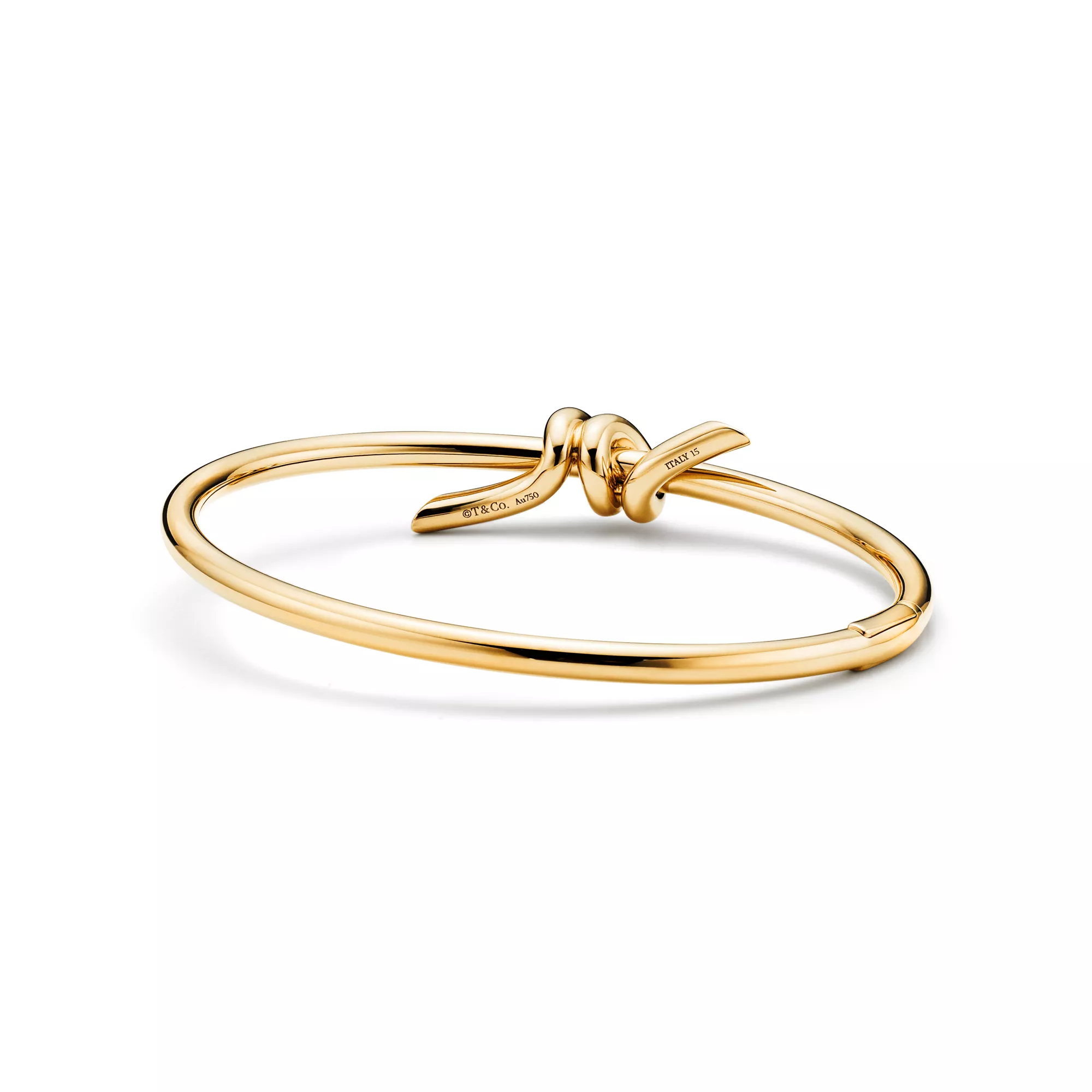 Tiffany Knot is an expression of love’s unwavering bonds. Inspired by an archival bow crafted in 1889, Knot is a symbol of life’s most enduring ties and meaningful connections. This wire bangle is crafted of 18k yellow gold and polished by hand for high shine. Wear this piece on its own or partnered with classic silhouettes for an unexpected pairing.