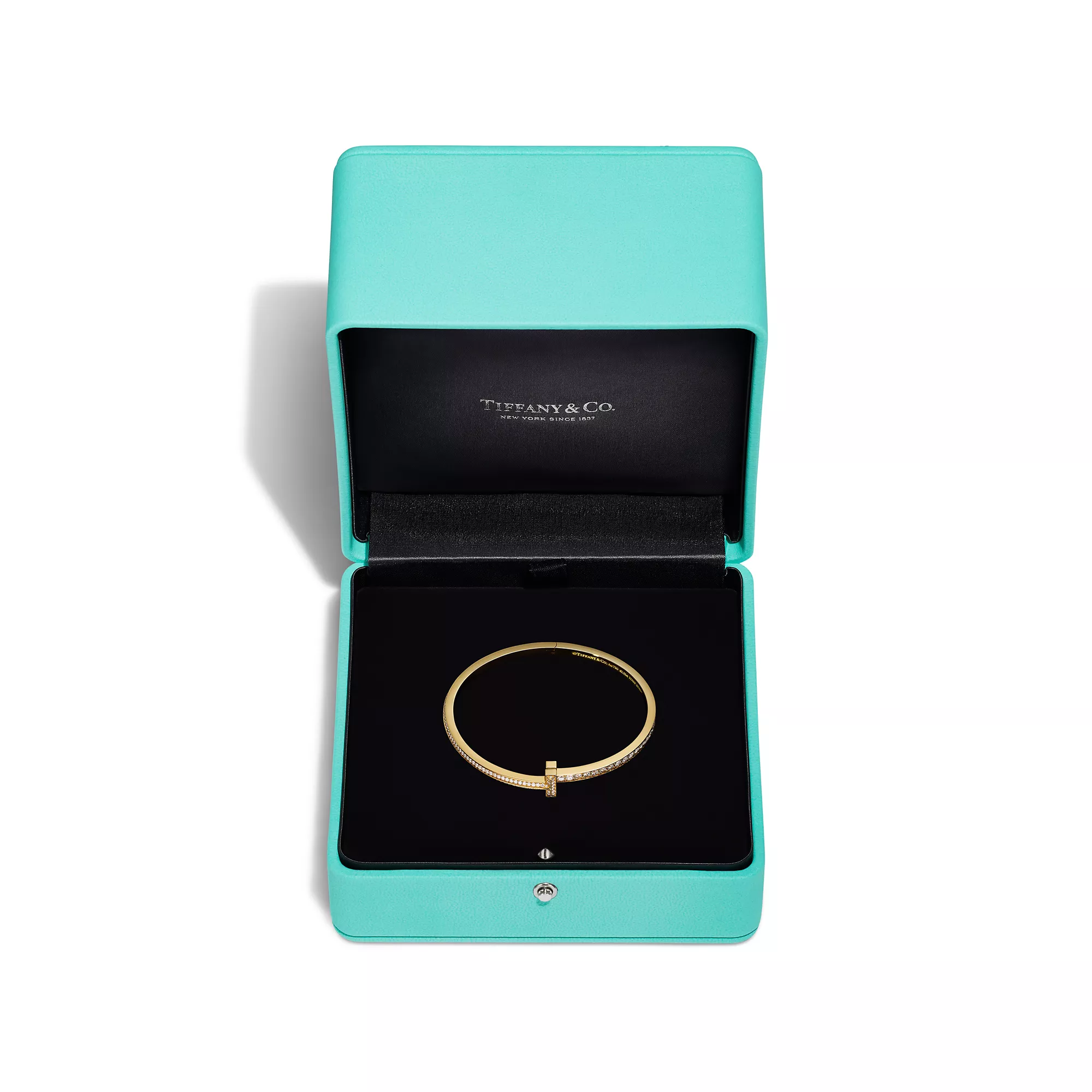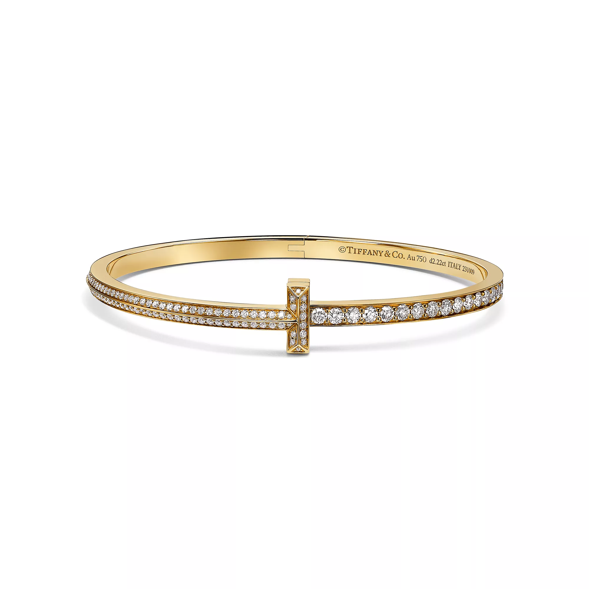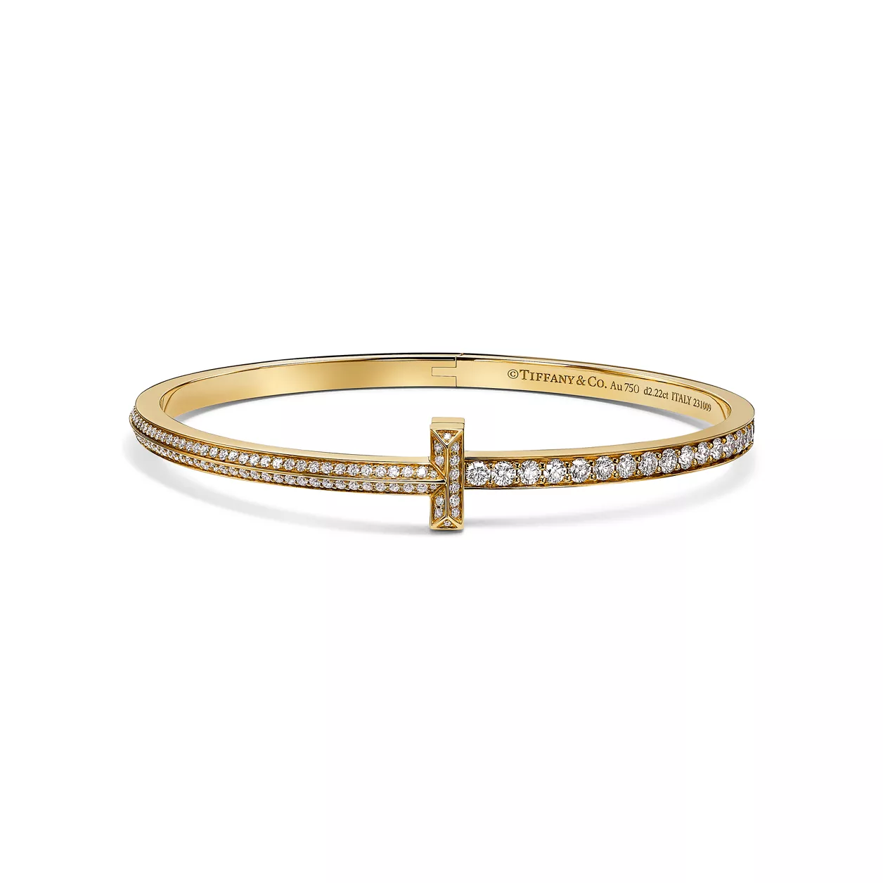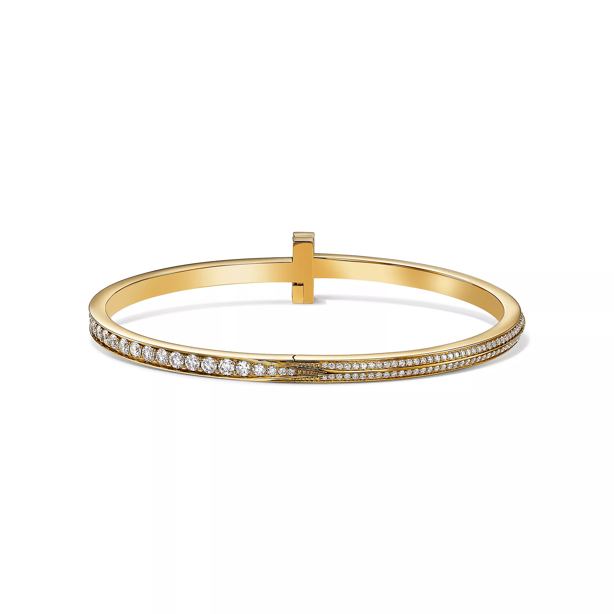 Tiffany T T1 Narrow Pavé Diamond Hinged Bangle in Yellow Gold
