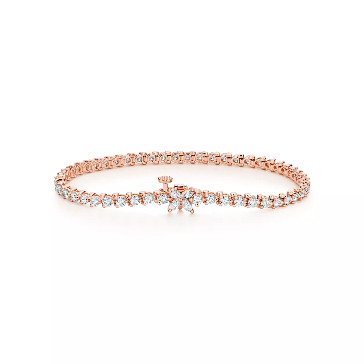 Inspired by the fire and radiance of our superlative diamonds, Tiffany Victoria uses a unique combination of cuts for a distinctly romantic sensibility. This feminine take on the classic line bracelet features a dazzling clasp of marquise diamonds.
