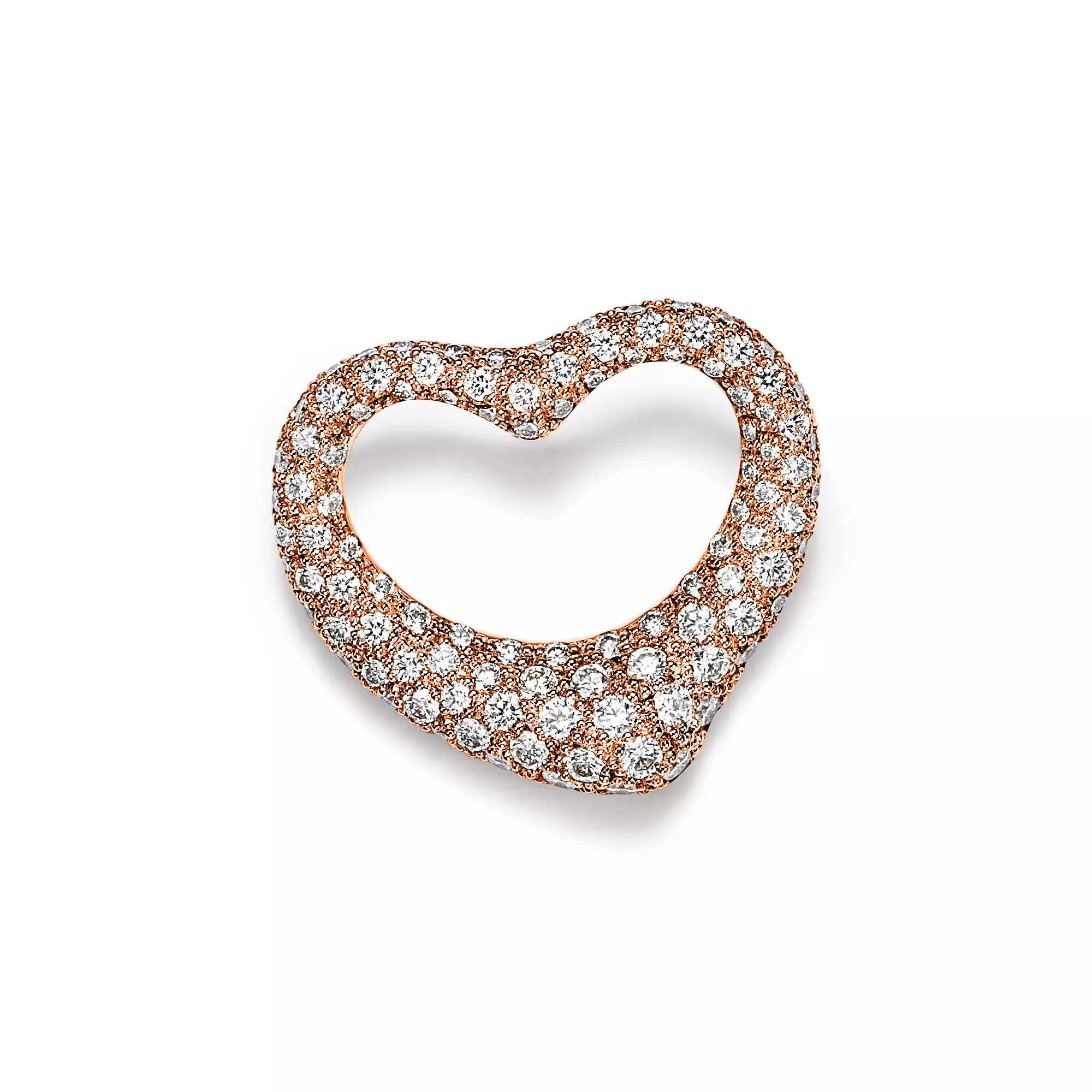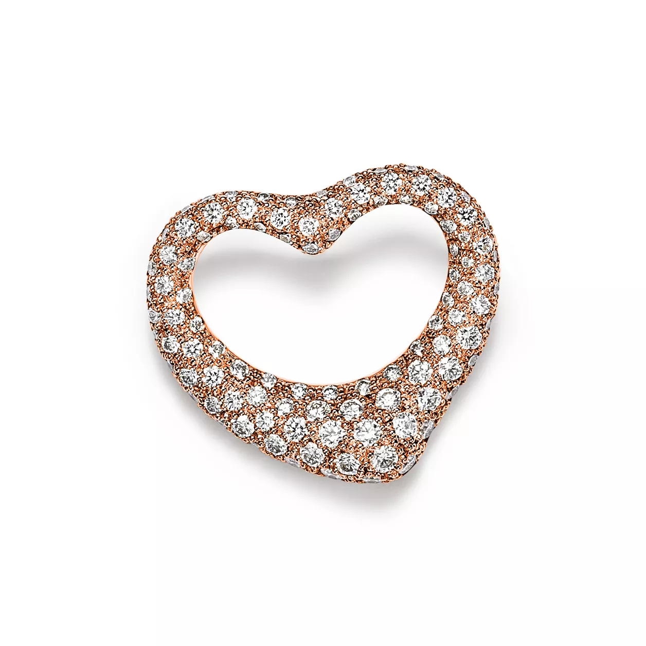 Elsa Peretti® Open Heart Brooch in Rose Gold with Pavé Diamonds