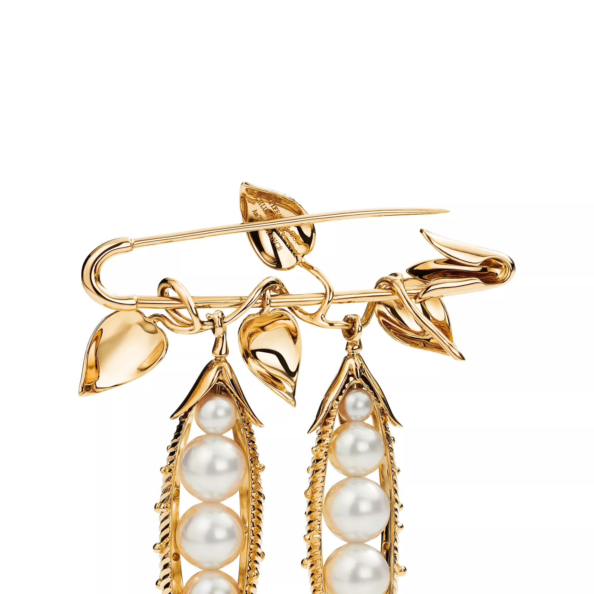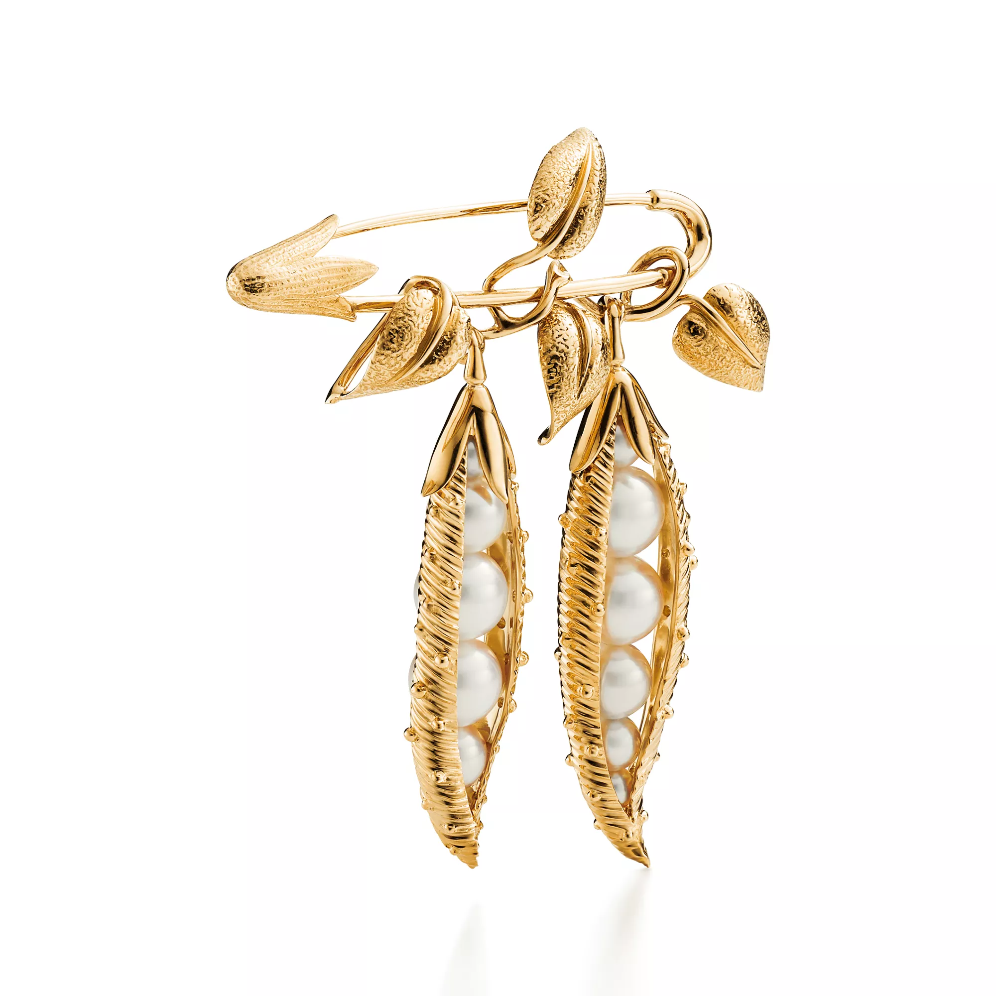 Jean Schlumberger’s visionary creations are among the world’s most intricate designs. Delicate 18k yellow gold leaves and lustrous cultured pearls define this striking statement brooch, transforming a simple peapod motif into a captivating design.