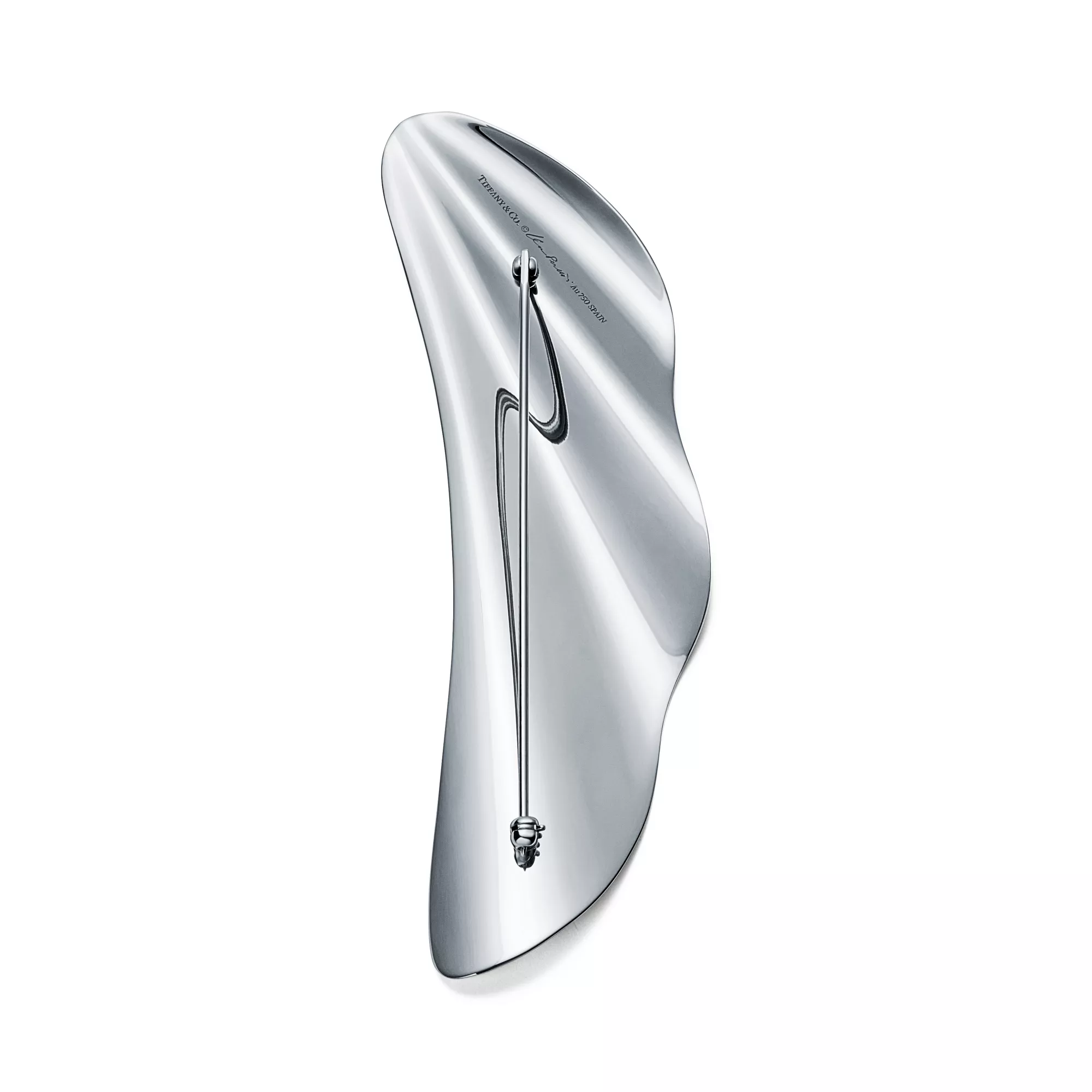 Inspired by the ebb and flow of the sea, this High Tide design emphasizes the simple beauty of nature. A graceful curve echoes rippling waves on this sterling silver brooch. Wear it near the collar of a blouse or on the lapel of a jacket for an eye-catching look.