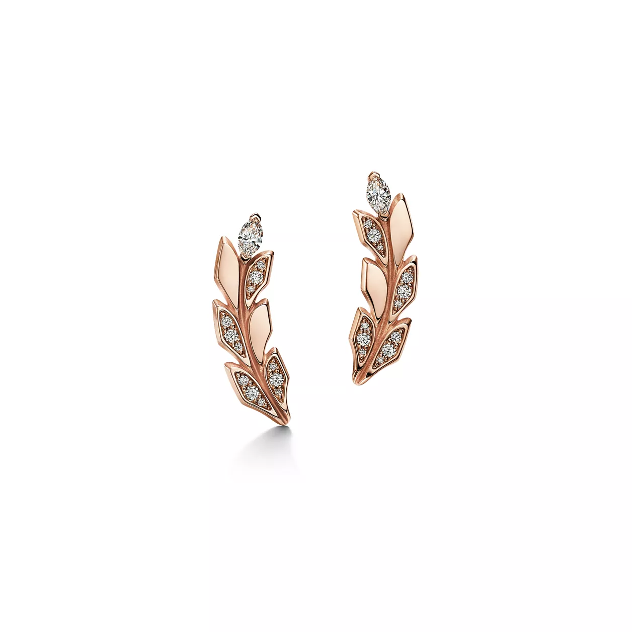Inspired by the natural world, Tiffany Victoria designs capture the fluid movement of flowers, vines and leaves with a mix of expertly cut diamonds. These climber vine earrings are crafted of 18k rose gold that features a contrast of high polish and sandblasted finishes. Round brilliant and marquise diamonds play off the light and accentuate the vine motif. When too many diamonds are never enough, Tiffany Victoria is the ultimate way to shine. For an unexpected look, pair your climber earrings with dramatic drop earrings or minimal studs.