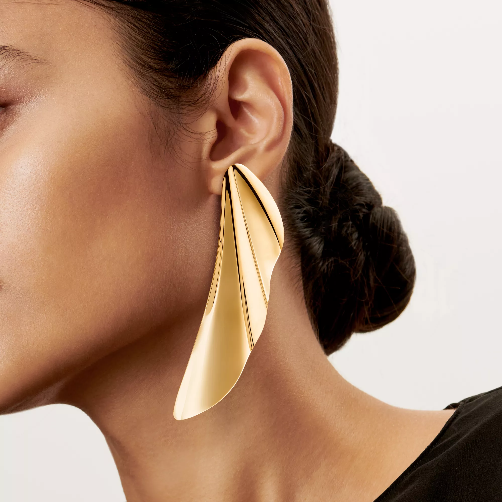 Inspired by the ebb and flow of the sea, this High Tide design emphasizes the simple beauty of nature. A graceful curve echoes rippling waves in these elegant earrings. Wear this dramatic pair for a bold look.