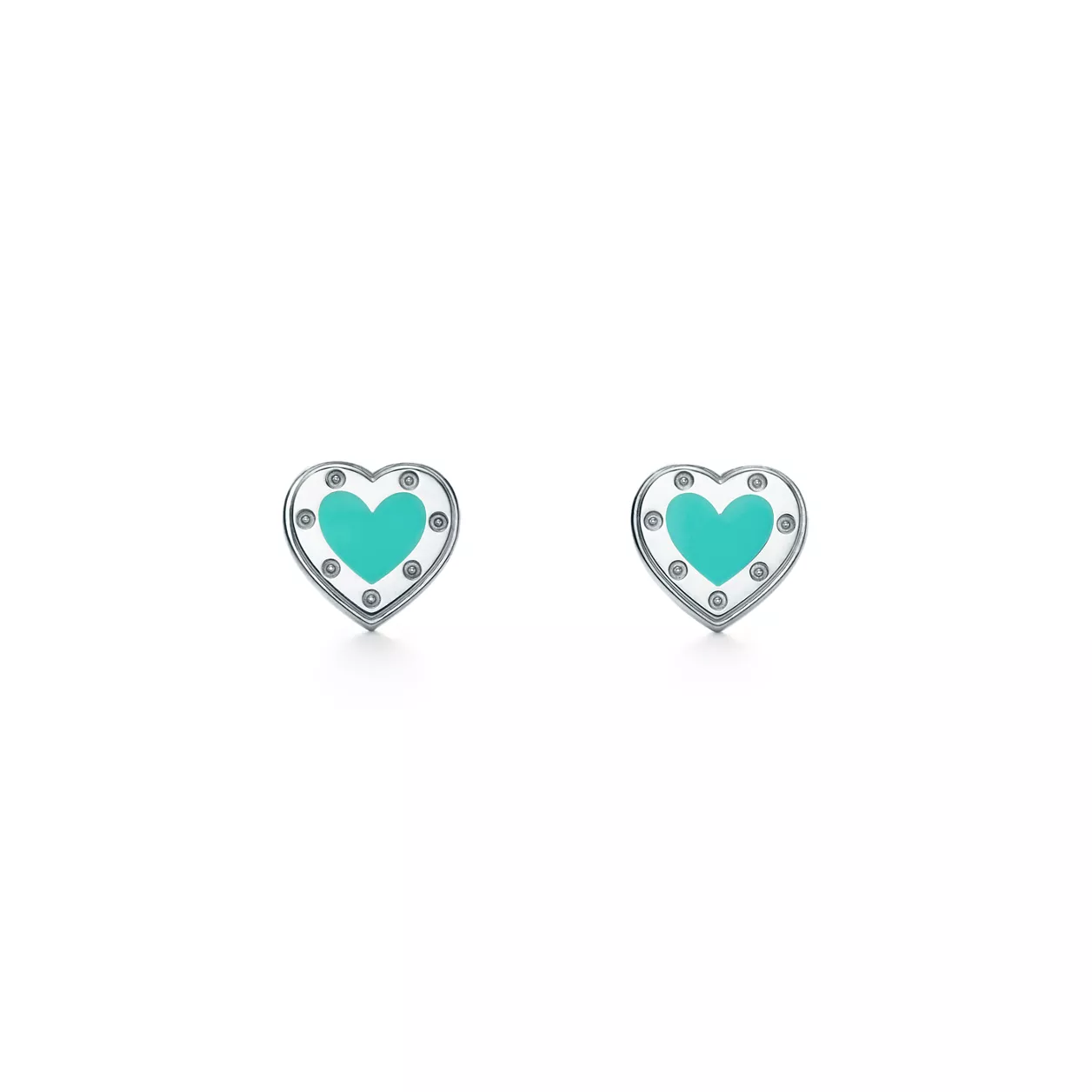 A pop of Tiffany Blue® enamel finish adds a playful spirit to these heart-shaped sterling silver earrings. Inspired by the iconic keyring first introduced in 1969, the Return to Tiffany collection is a classic reinvented. Wear them as a statement pair or with multiple sterling silver studs for a maximalist look.