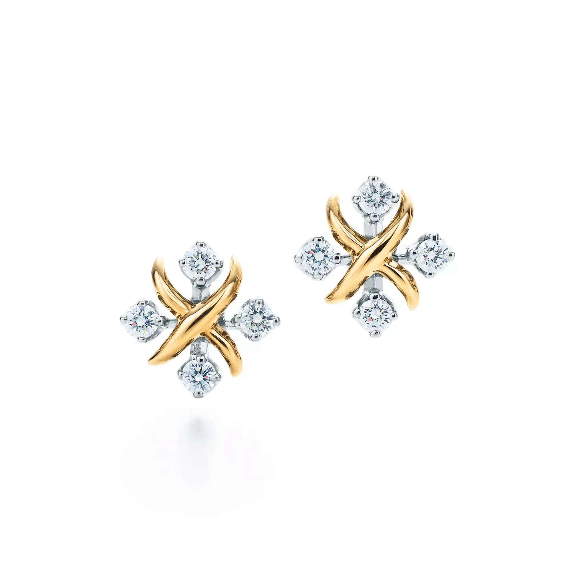 Sixteen Stone by Tiffany is an expression of love’s nurturing forces. Conceived by legendary designer Jean Schlumberger in 1959, the collection’s cross-stitch motif was inspired by his family’s roots in textiles. Round brilliant diamonds alternate with golden Xs to create this dazzling design.