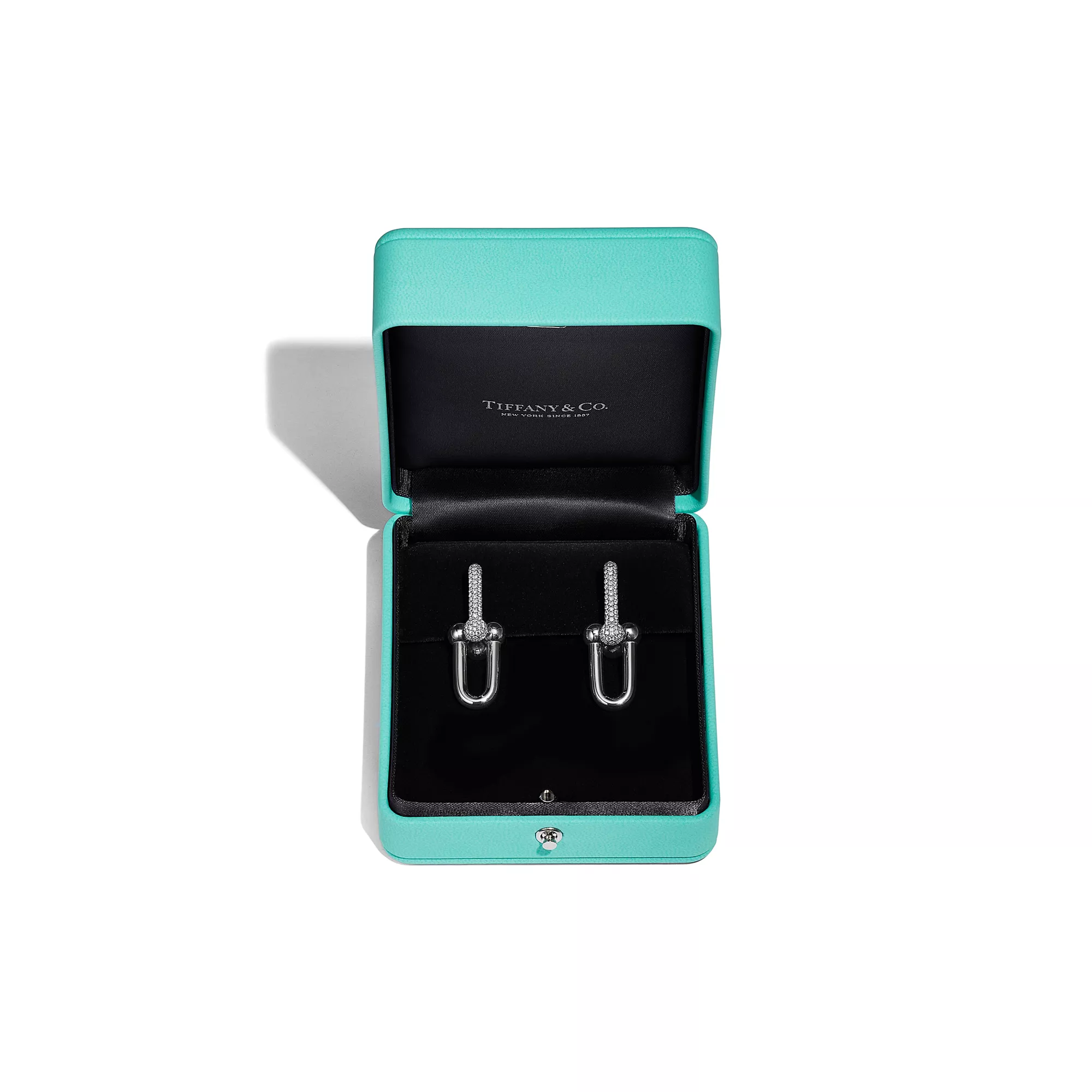 Tiffany HardWear Large Link Earrings in White Gold with Pavé Diamonds