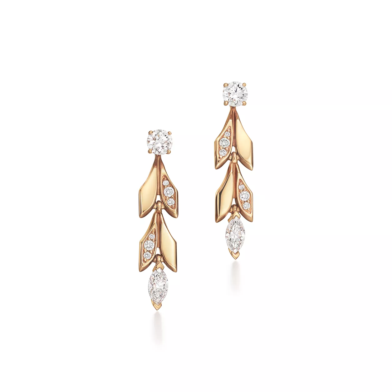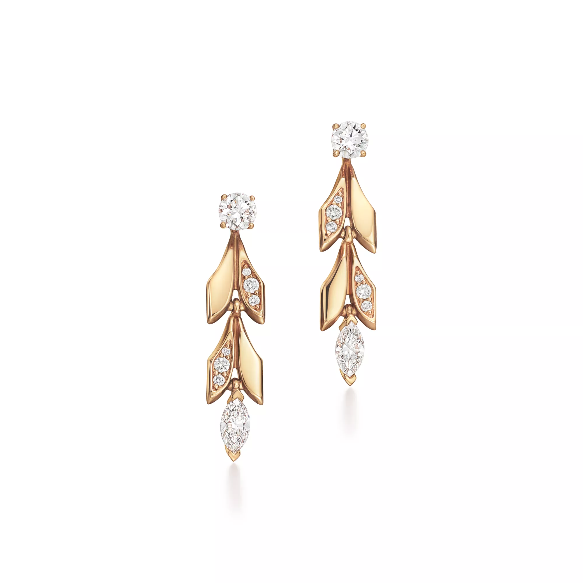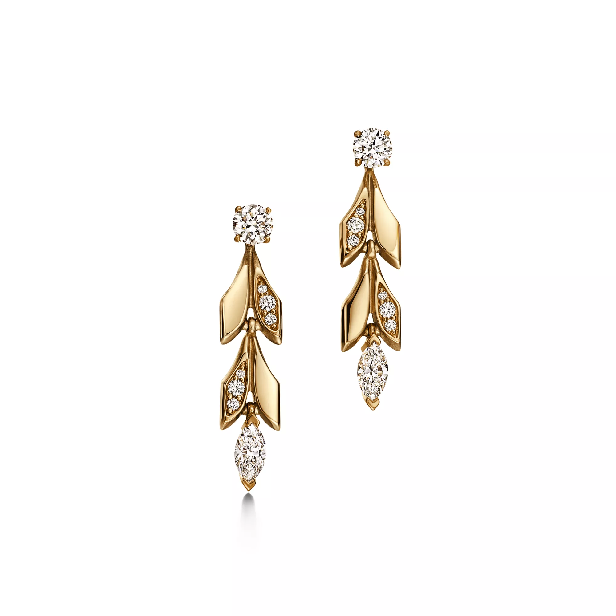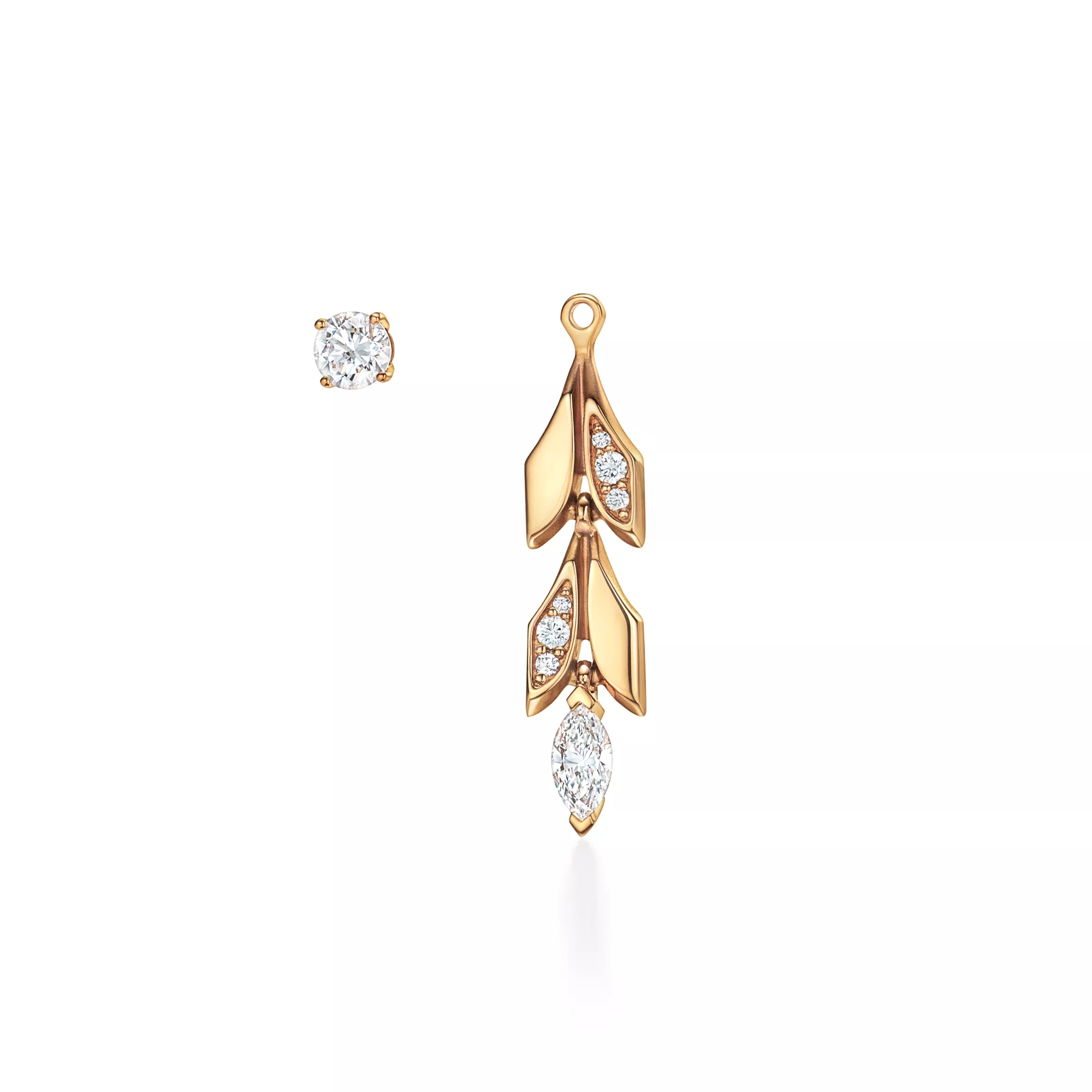 Inspired by the natural world, Tiffany Victoria designs capture the fluid movement of flowers, vines and leaves with a mix of expertly cut diamonds. These convertible earrings effortlessly adjust from diamond studs to striking drop earrings for when you’re dressed up or down. They’re crafted of 18k gold with a contrast of high polish and sandblasted finishes. Round brilliant and marquise diamonds play off the light and accentuate the vine motif. When too many diamonds are never enough, Tiffany Victoria is the ultimate way to shine. For an unexpected look, wear one earring as a stud and one as a drop.