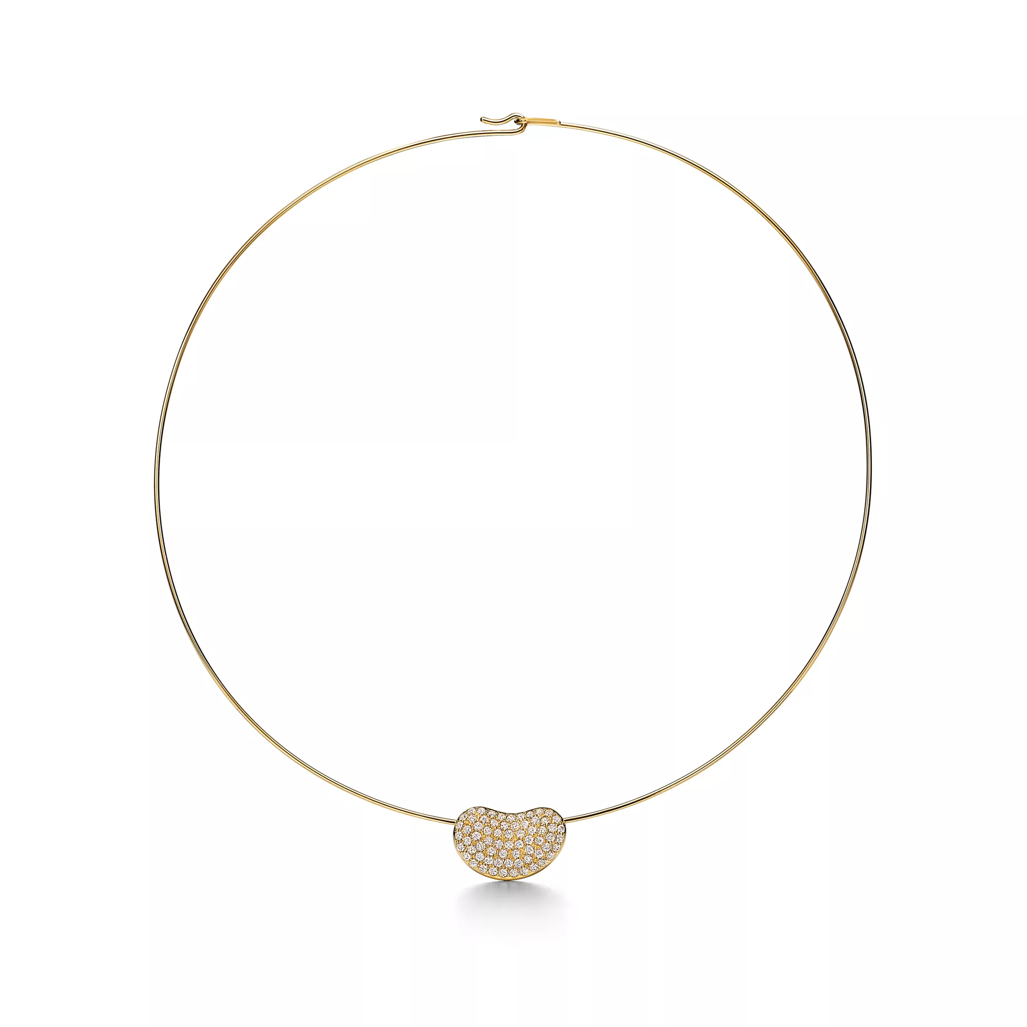 Enter your email address below. We’ll let you know when Elsa Peretti® Bean design Wire Necklace in Gold with Pavé Diamonds, 20 mm is launched.