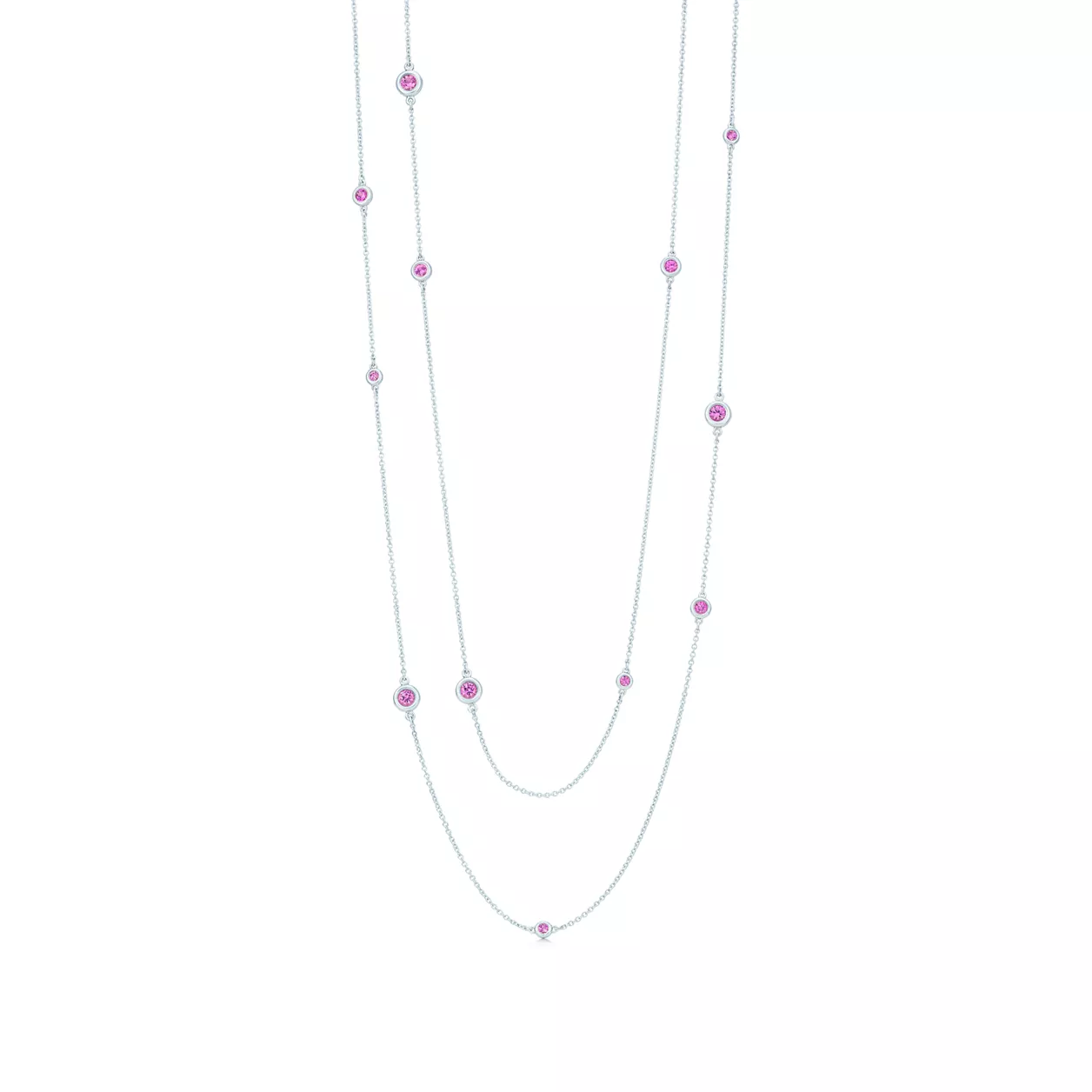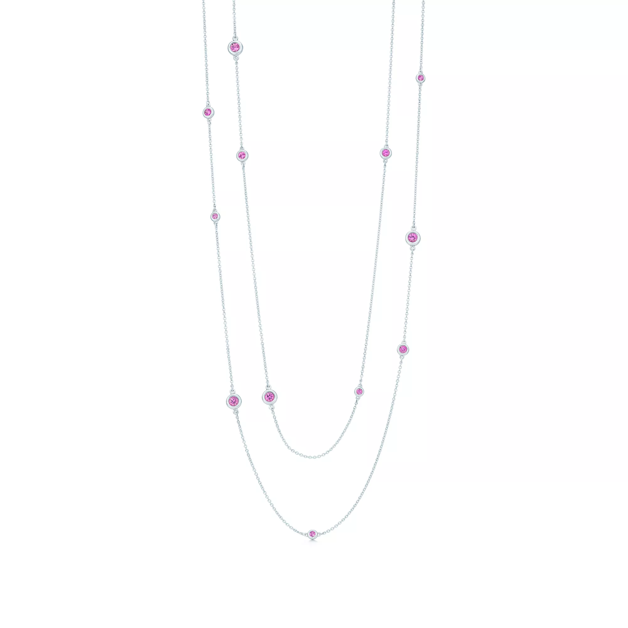 Necklace in sterling silver with 12 round pink sapphires. 36" long. Carat total weight 1.30. Original designs copyrighted by the Nando and Elsa Peretti Foundation.