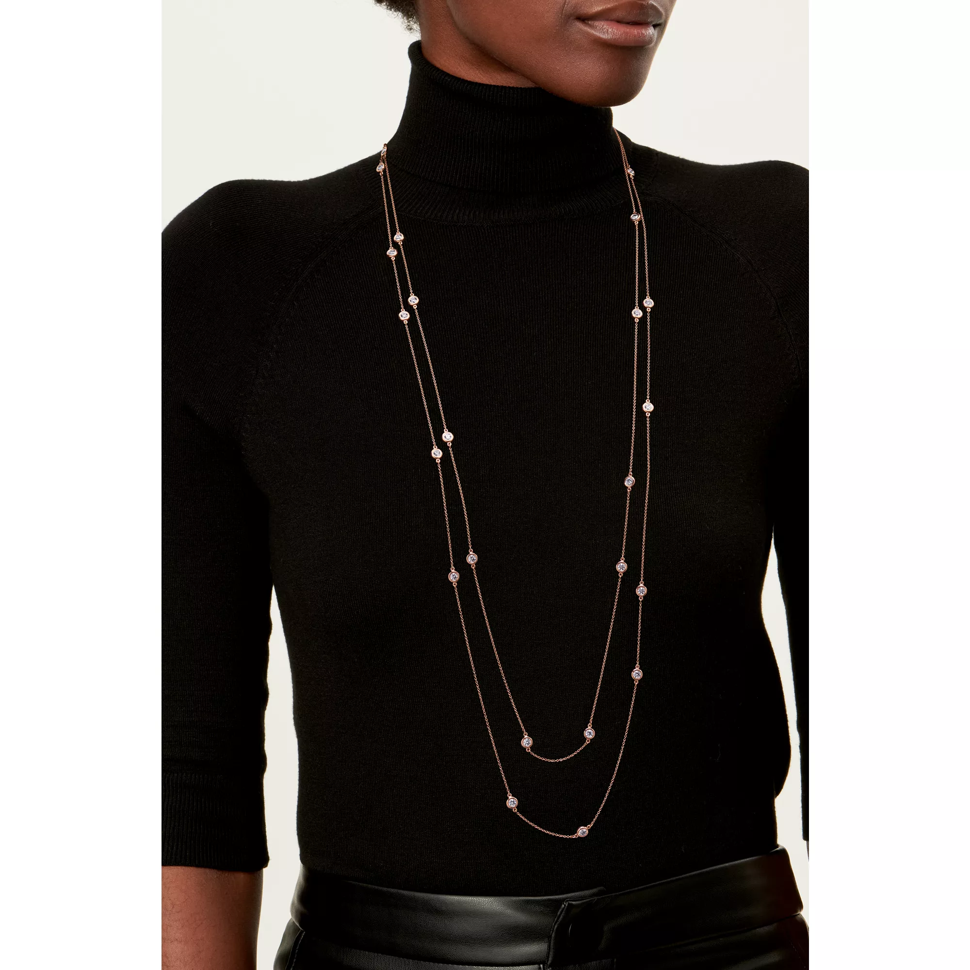 Elsa Peretti’s revolutionary Diamonds by the Yard® collection features a combination of fine, fluid chains and bezel-set stones that forever changed the role of diamonds in fashion. Each round brilliant diamond is positioned gracefully along an 18k rose gold chain to look like a droplet of light against the skin. Layer this design with other Diamonds by the Yard® pendants and necklaces of varying lengths and metals for a look that’s all your own.