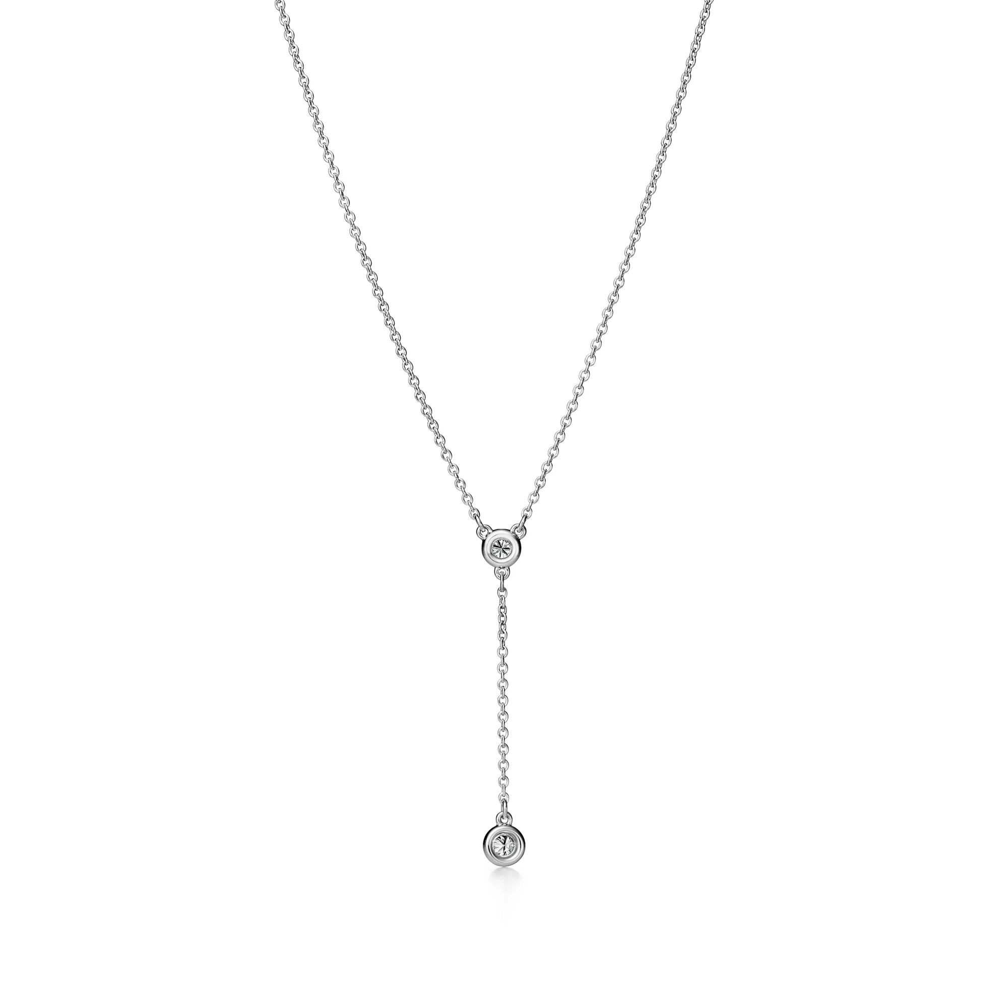 Tiffany round diamonds catch the light and make it dance. Necklace in sterling silver with two round brilliant diamonds. 16" long. Carat total weight .12. Original designs copyrighted by the Nando and Elsa Peretti Foundation.
