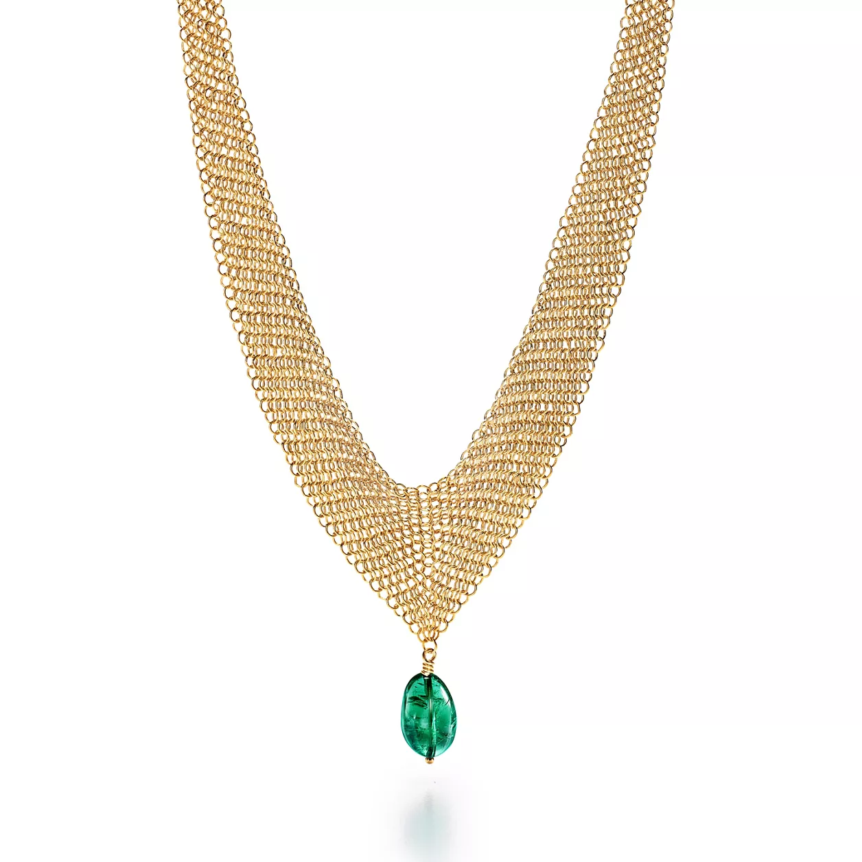 Enter your email address below. We’ll let you know when Elsa Peretti® Mesh Bib Necklace in 18k Gold with a Tumbled Emerald Bead is launched.