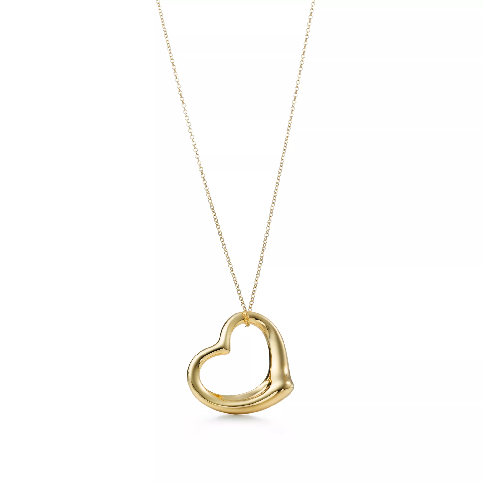 An expression of love’s limitless bounds, Elsa Peretti® Open Heart is one of the designer's most celebrated creations. Elsa Peretti was inspired to create this design after viewing British sculptor Henry Moore’s work, when she envisioned a heart in the void of one of his sculptures. Peretti worked for months alongside the most gifted artisans to refine Open Heart’s simple, evocative and continuous shape which has been a part of her legacy since 1974. This elegant 18k yellow gold pendant is expertly crafted to move gracefully with the wearer. For maximum impact, pair it with earrings from the Open Heart collection.