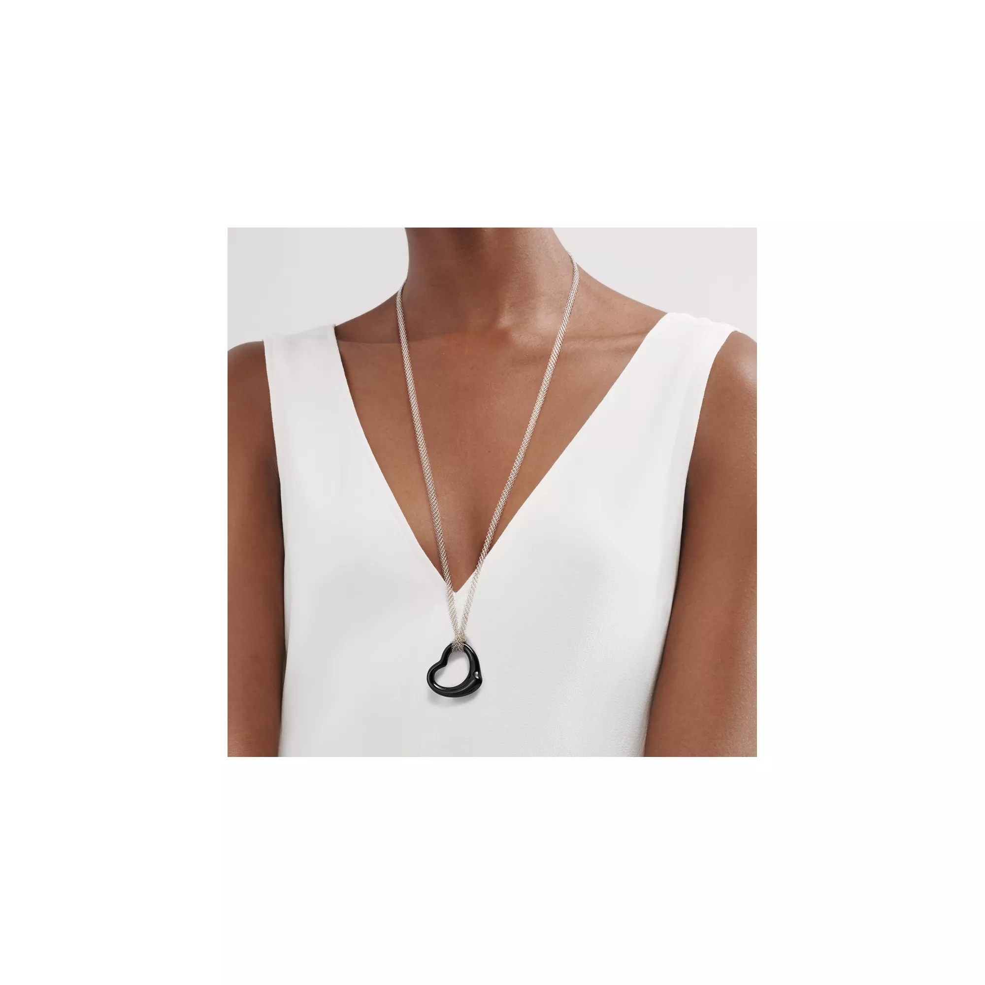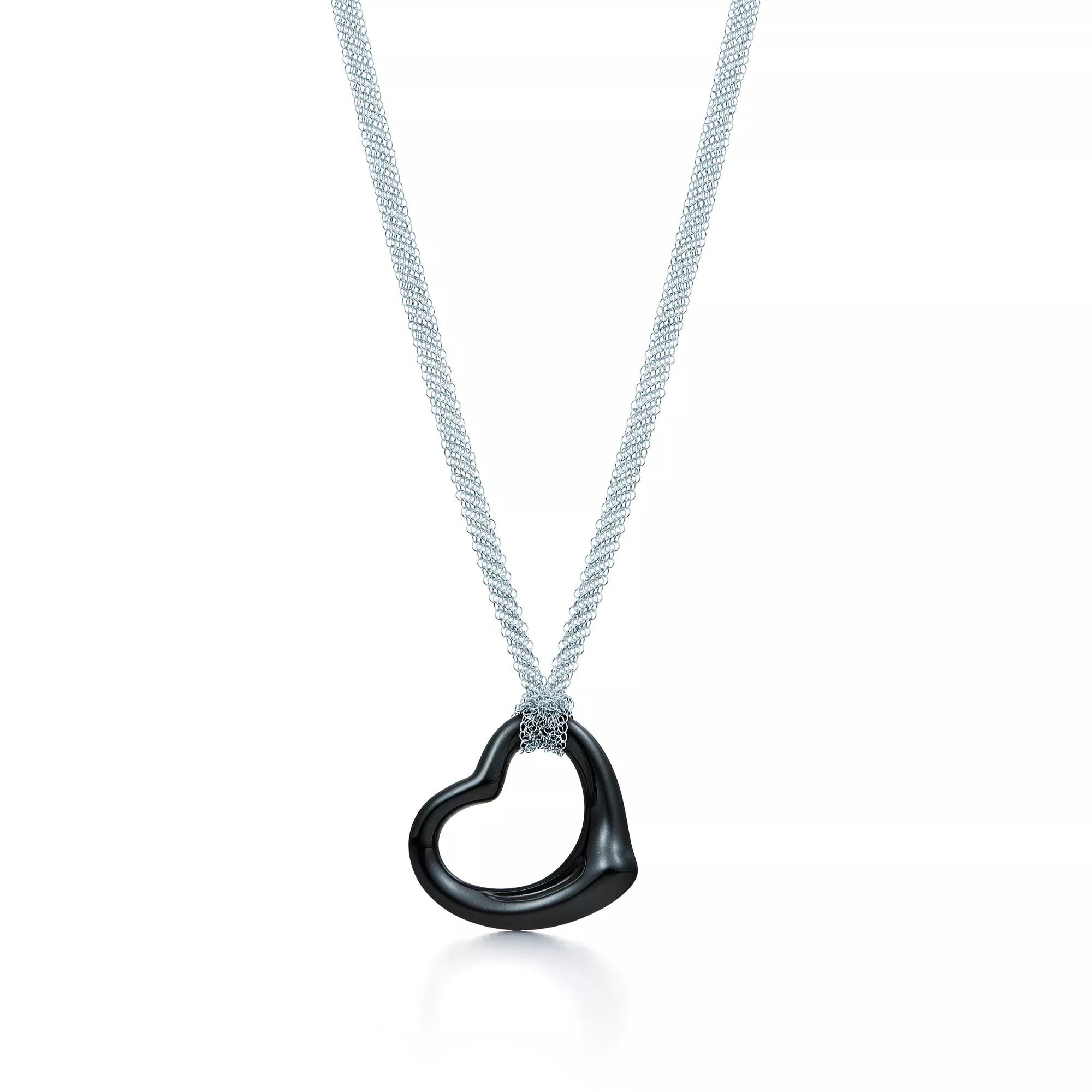 The simple, evocative shape of Elsa Peretti® Open Heart designs are an expression of love's limitless bounds. A testament to Peretti’s affinity for craftsmanship and form, the collection reinterprets the heart shape with an organic and sculptural approach that transcends the sentimentality of this universal symbol. Layer this sterling silver and black nephrite jade piece with pendants of varying lengths or wear as its own statement.