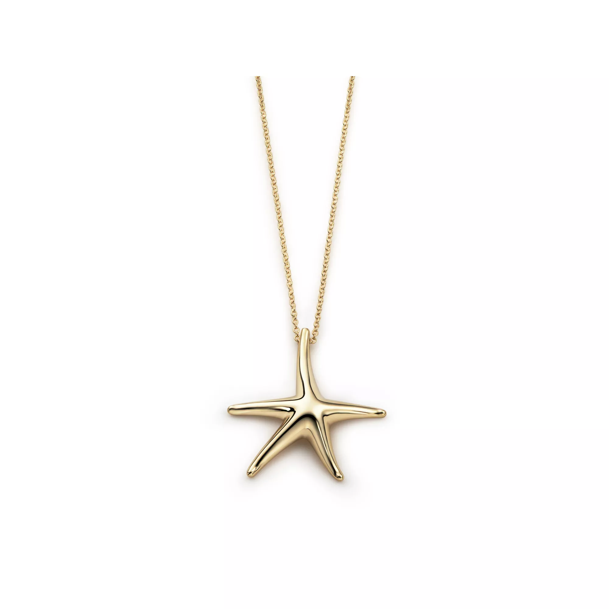 The starfish evokes life beneath the waves and in the celestial heavens. Pendant in 18k gold, 28 mm. On a 16" chain. Original designs copyrighted by the Nando and Elsa Peretti Foundation.