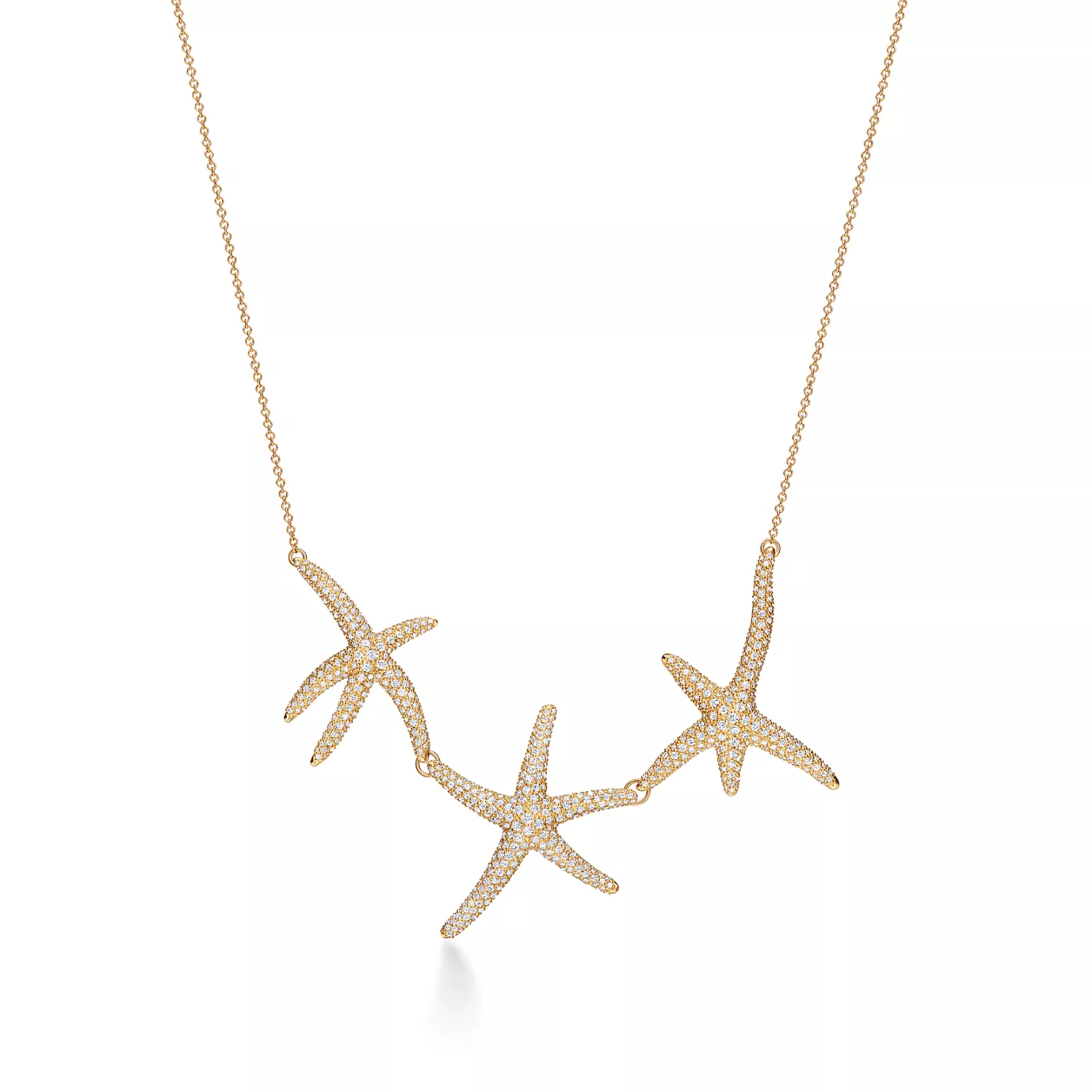 Elsa Peretti's Starfish design is a striking interpretation of one of nature's oldest creatures. Evoking life beneath the ocean, each starfish has a distinct character and a fluid silhouette. Hand-set with pavé diamonds, this bold necklace represents Peretti's extraordinary attention to detail and passion for the finest craftsmanship.