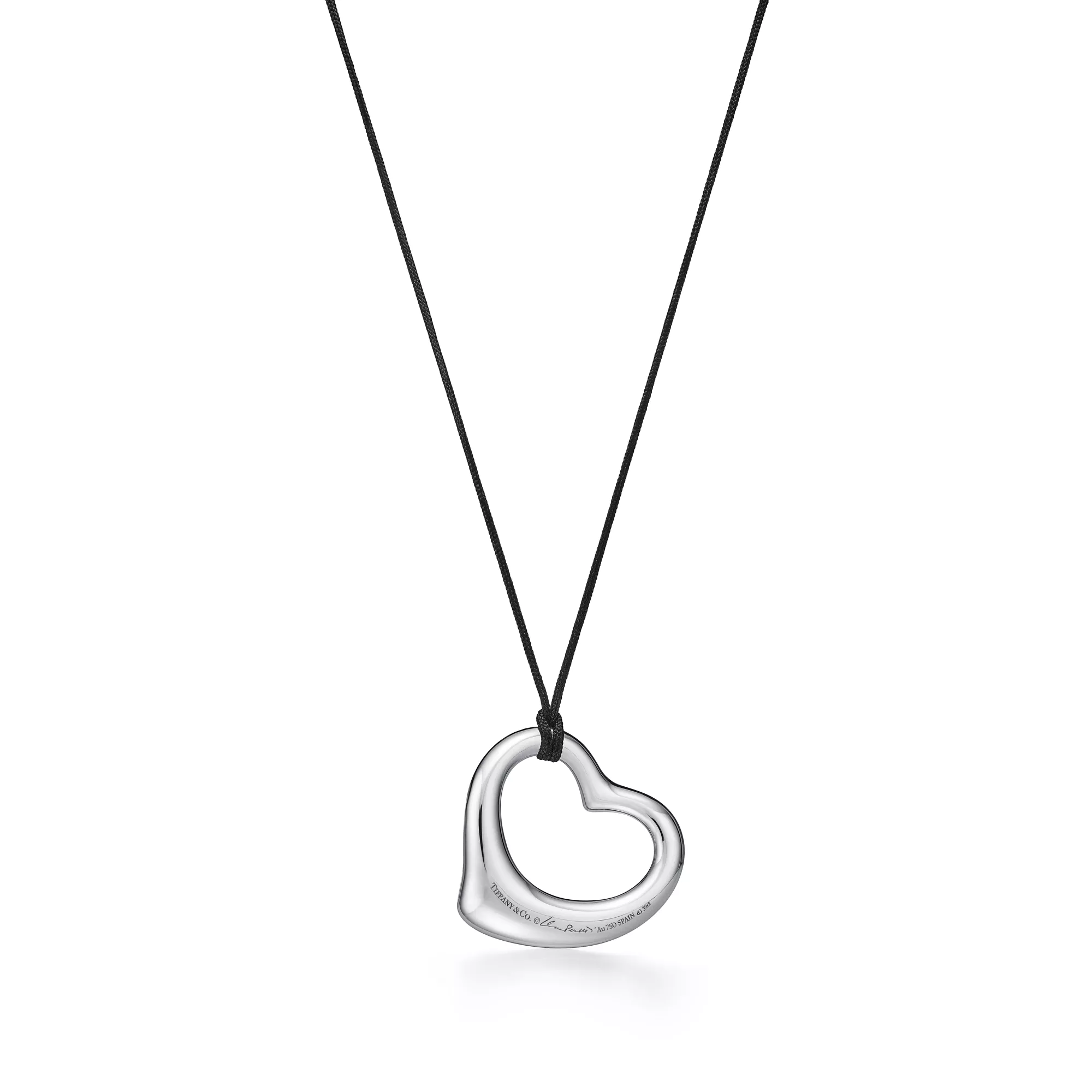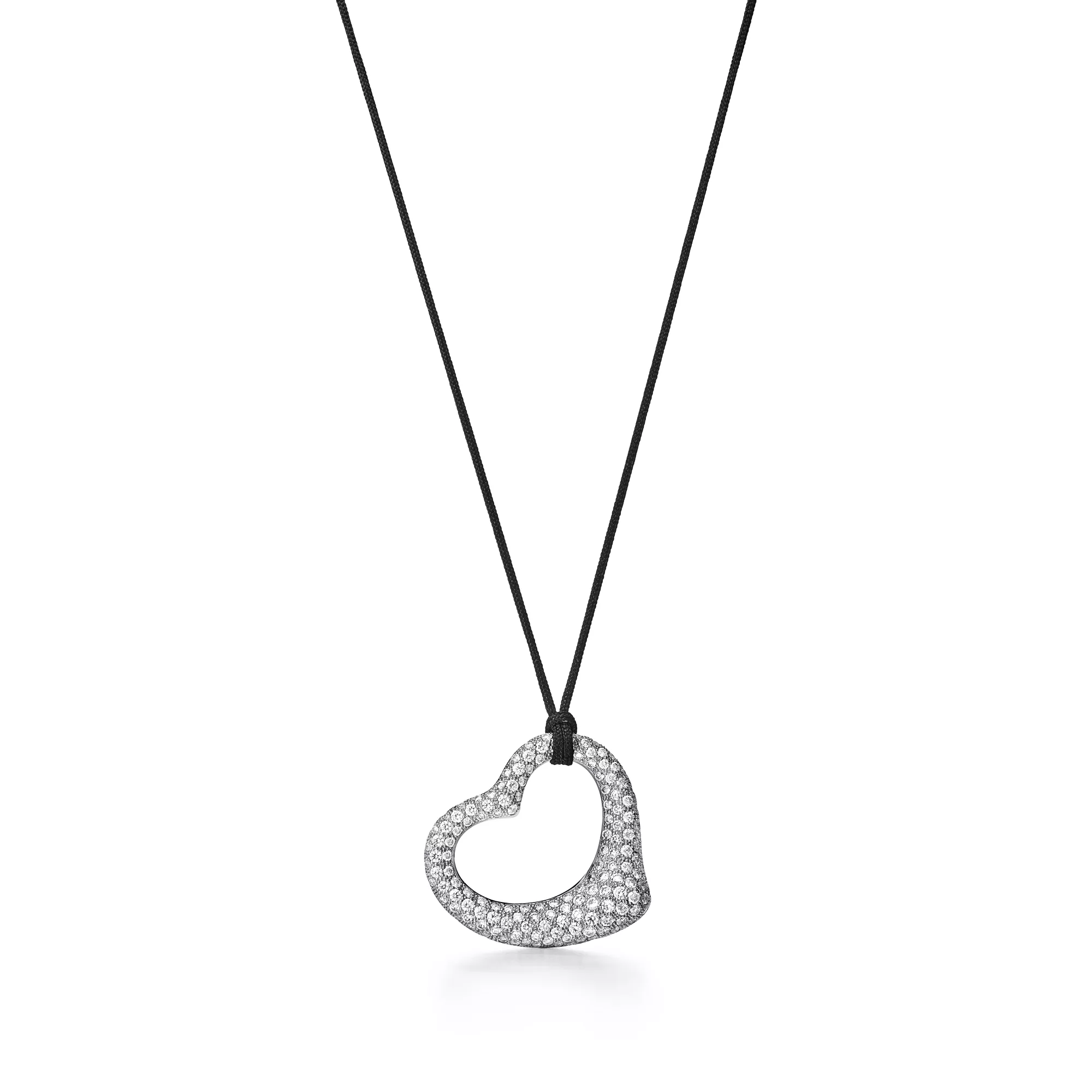 Elsa Peretti® Open Heart Pendant in Platinum with Pavé Diamonds and Black Silk
