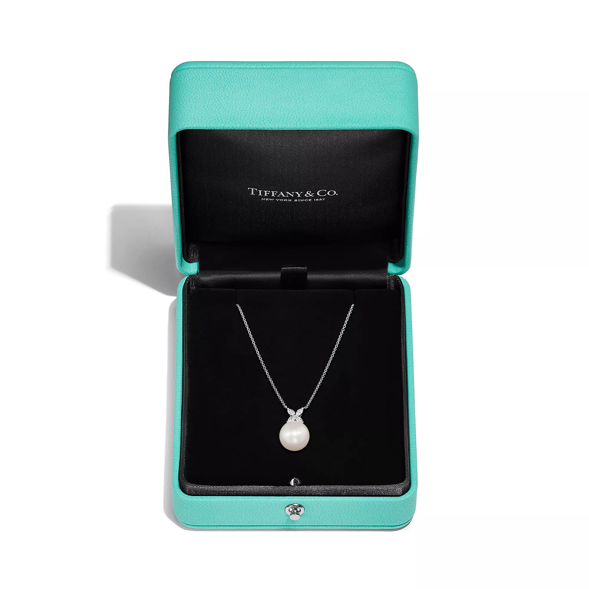 Inspired by the fire and radiance of our superlative diamonds, Tiffany Victoria uses a unique combination of cuts for a distinctly romantic sensibility. A South Sea cultured pearl elegantly complements the fiery radiance of this platinum-set diamond pendant.
