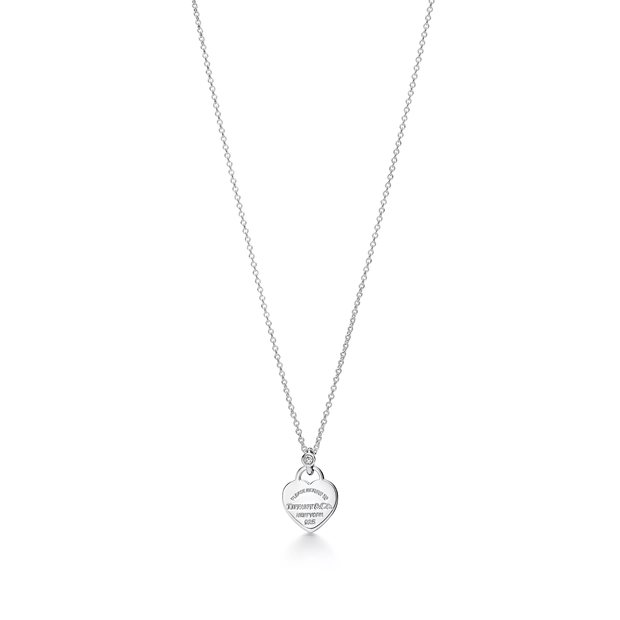 A bold expression of love, this sterling silver pendant is inspired by those who fill up your heart. Introduced in 1966, the original Return to Tiffany™ collection features keyrings engraved with the inscription "Please Return to Tiffany & Co. New York." Each one sold was assigned a unique serial number and registered so that if lost, it could be returned to the Tiffany flagship store on Fifth Avenue and reunited with its owner. This mini heart tag pendant is crafted in sterling silver and features a diamond bail. Wear this pendant yourself or give it as a gift to someone you treasure.
