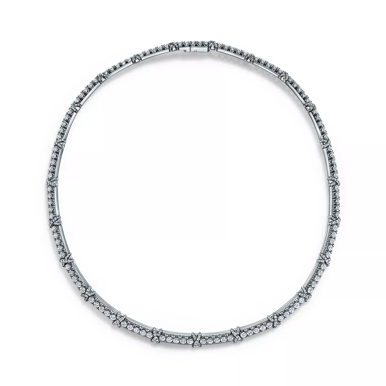 Sixteen Stone by Tiffany is an expression of love’s nurturing forces. Conceived by legendary designer Jean Schlumberger in 1959, the collection’s cross-stitch motif was inspired by his family’s roots in textiles. Round brilliant diamonds alternate with platinum Xs, creating this dazzling design.