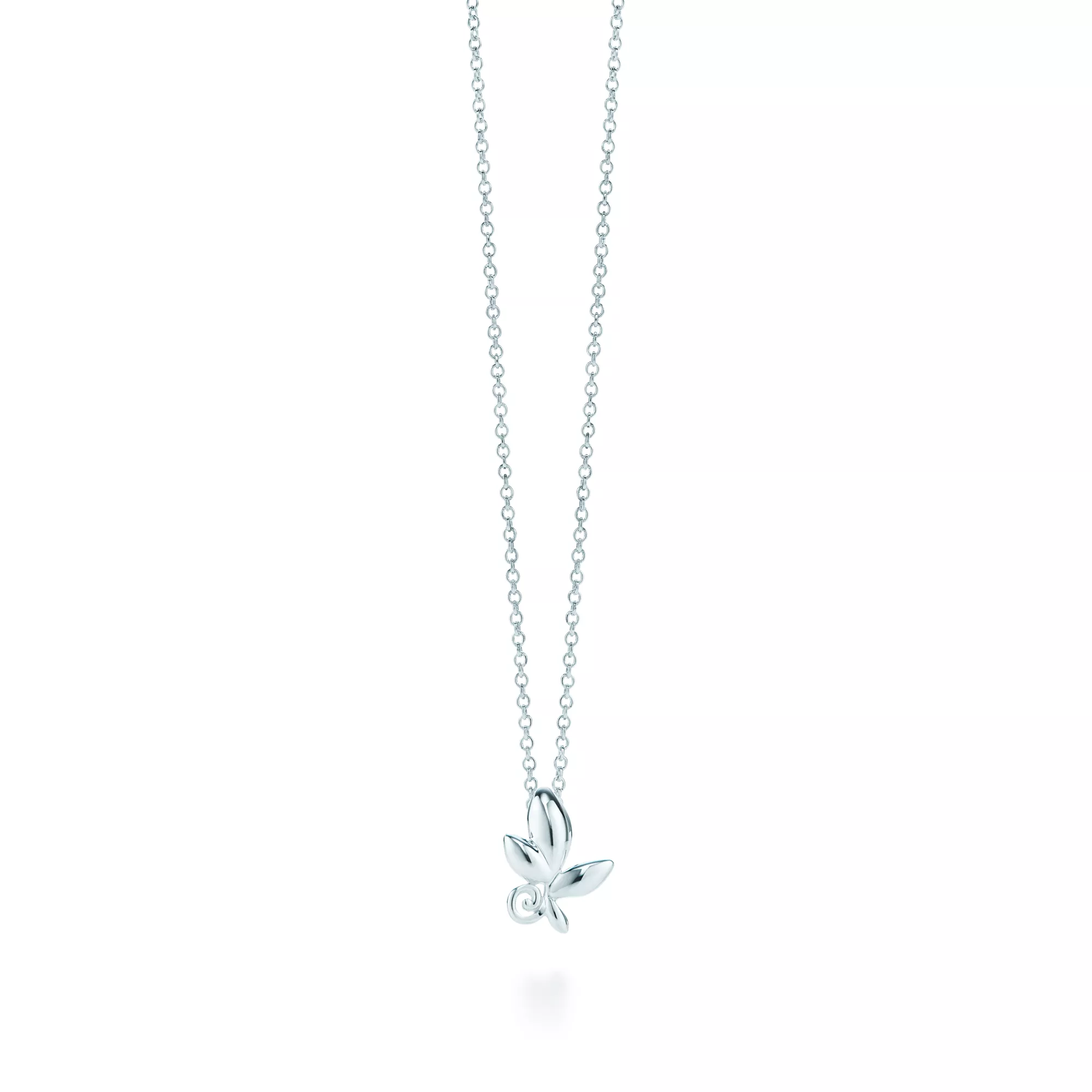 Inspired by the olive branch, a symbol of peace and abundance. Pendant in sterling silver. Size mini, on a 16" chain. Original designs copyrighted by Paloma Picasso.