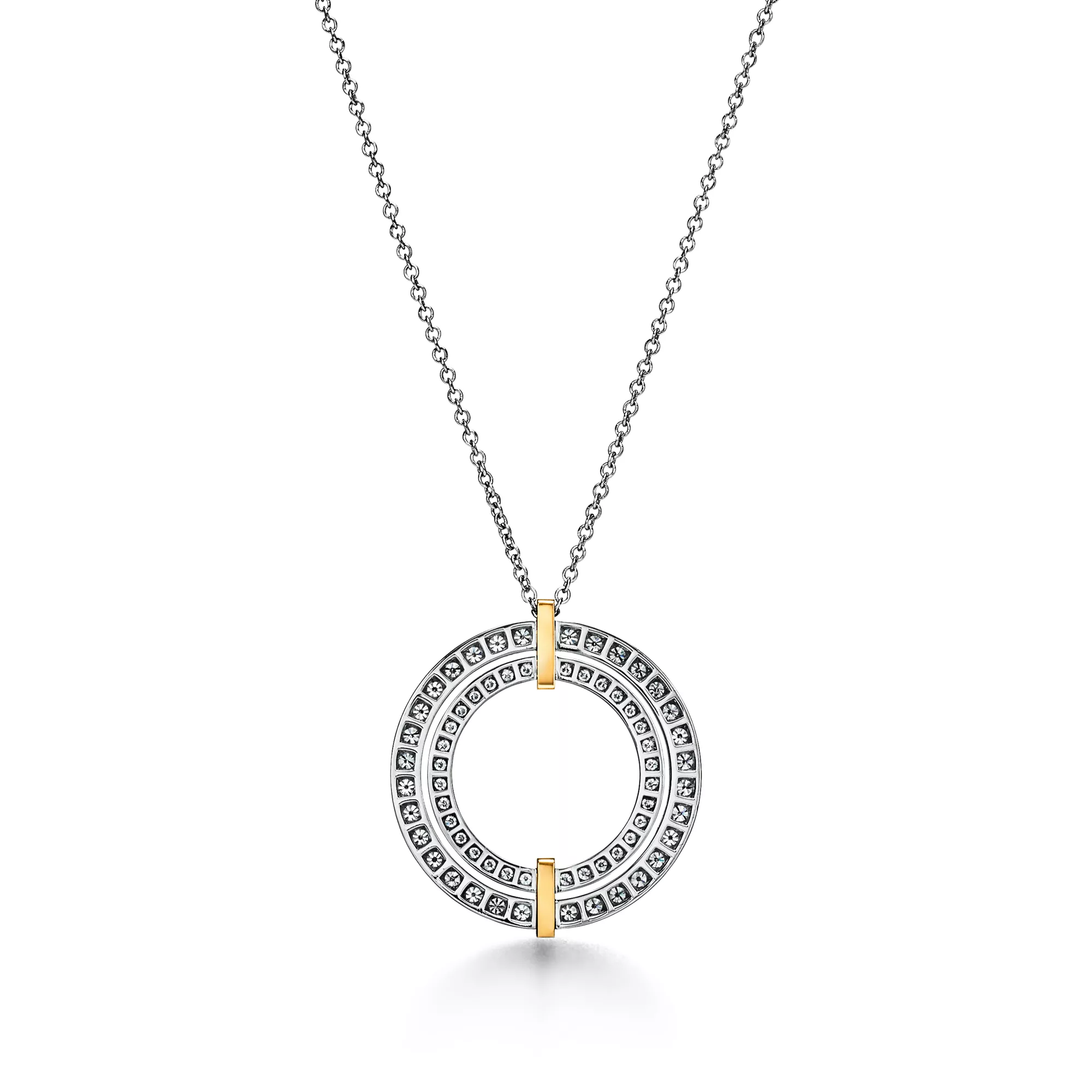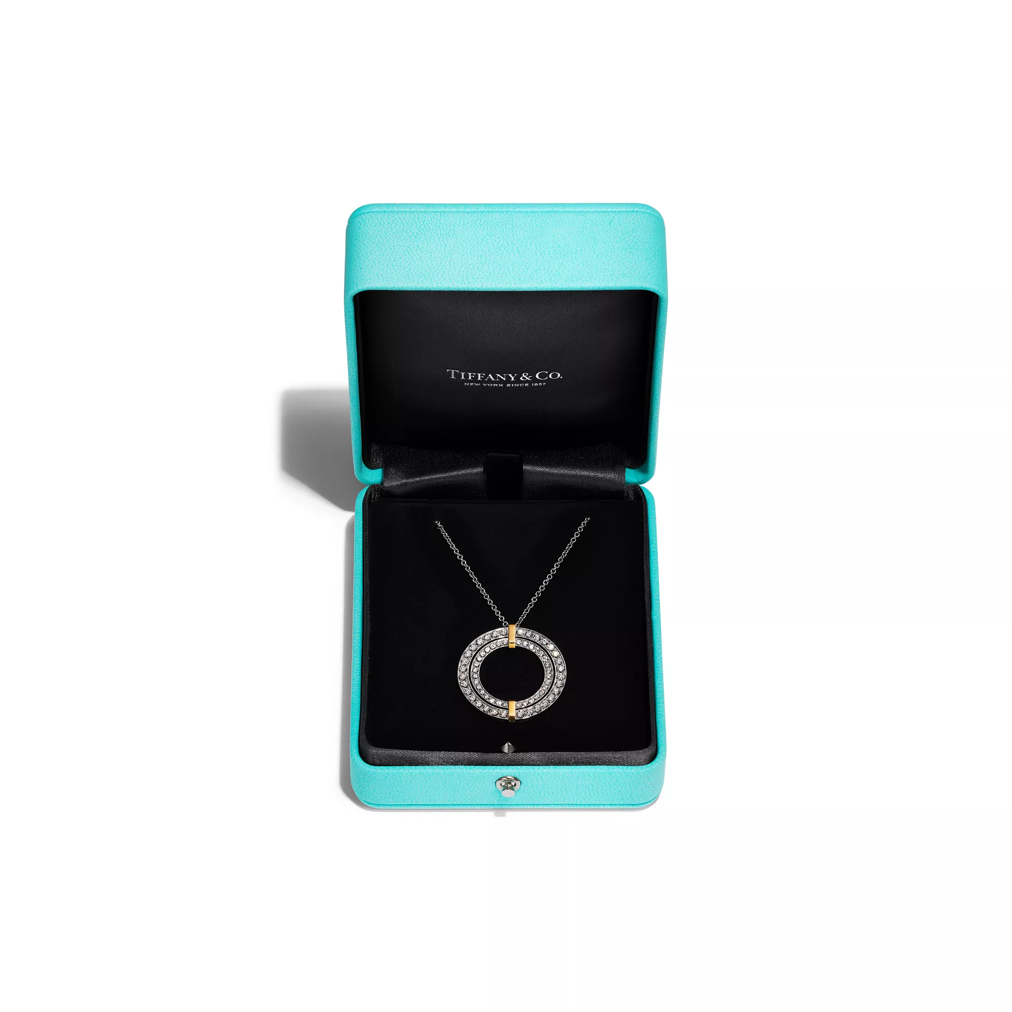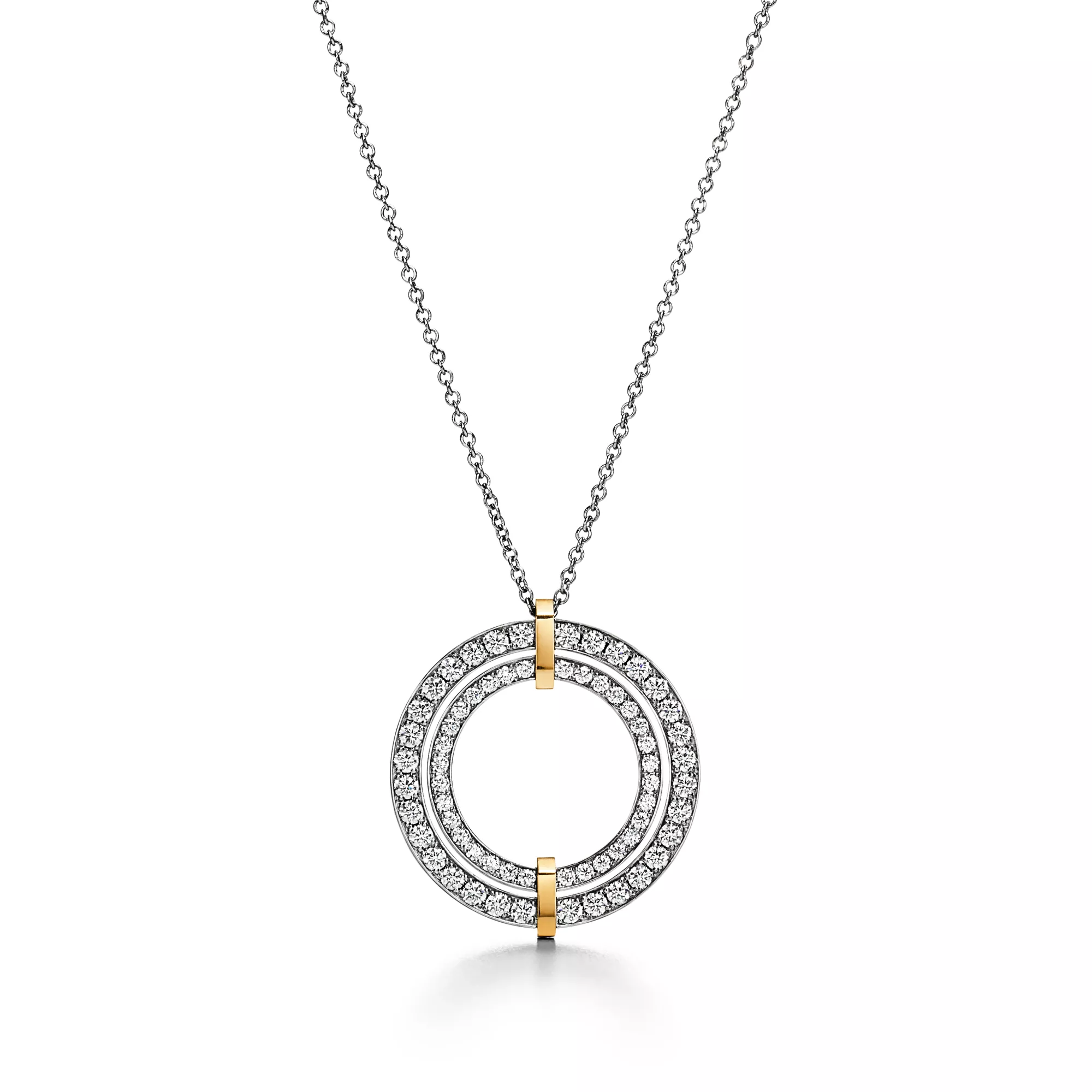 Enter your email address below. We’ll let you know when Tiffany Edge Circle Pendant in Platinum and Yellow Gold with Diamonds, Large is launched.